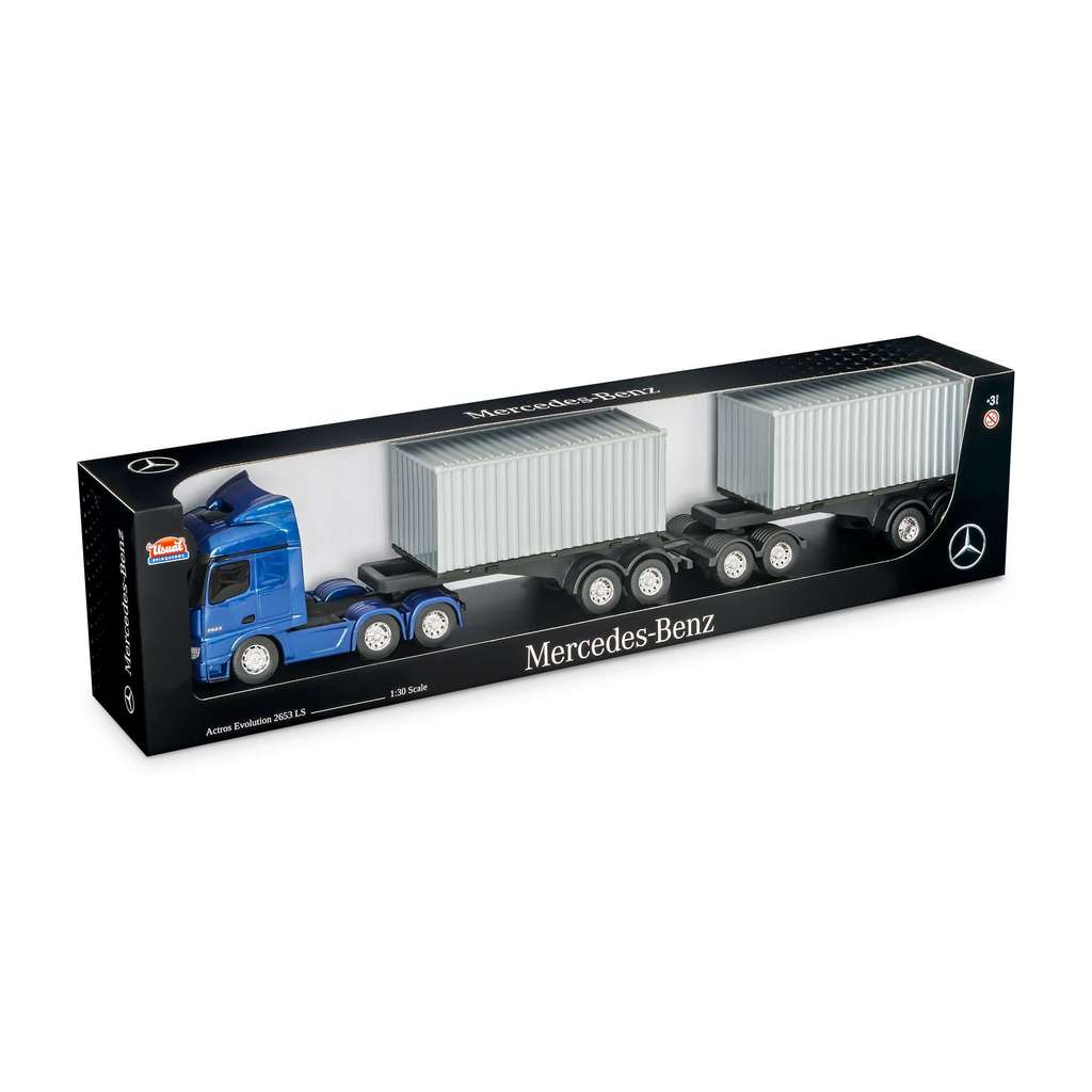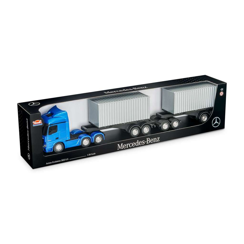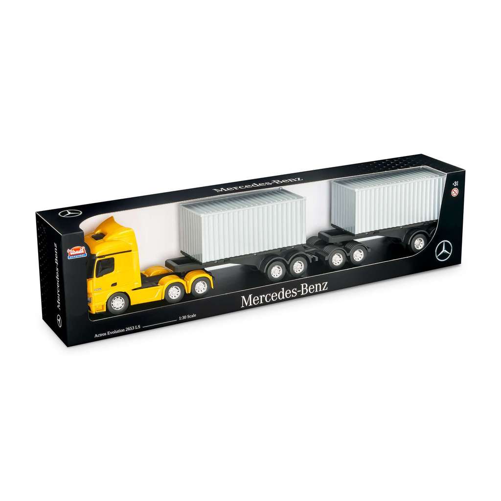 Caminhão infantil Menino Miniatura Mercedes Benz Actros Rodotrem Container