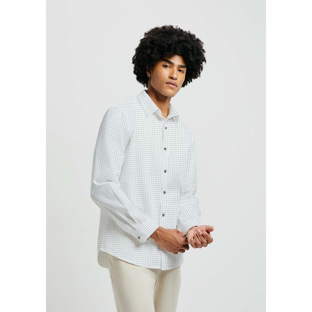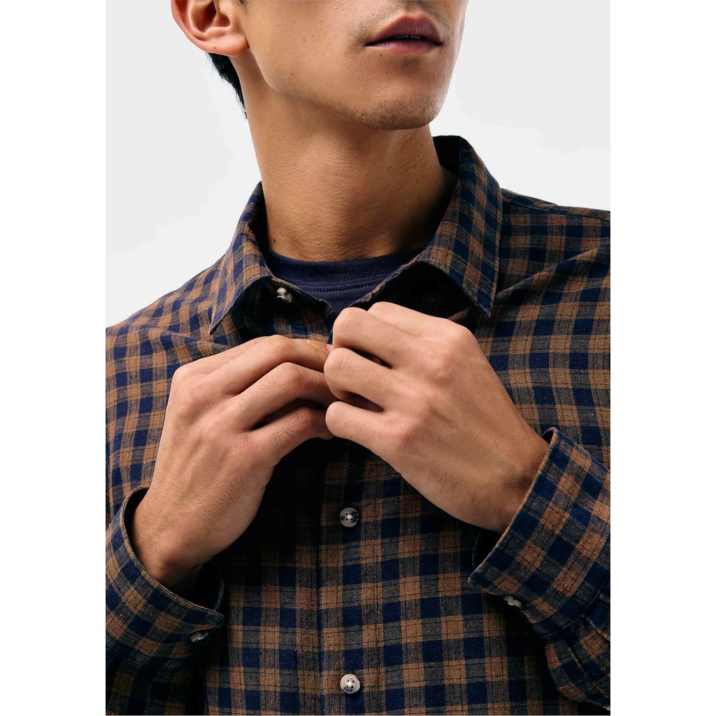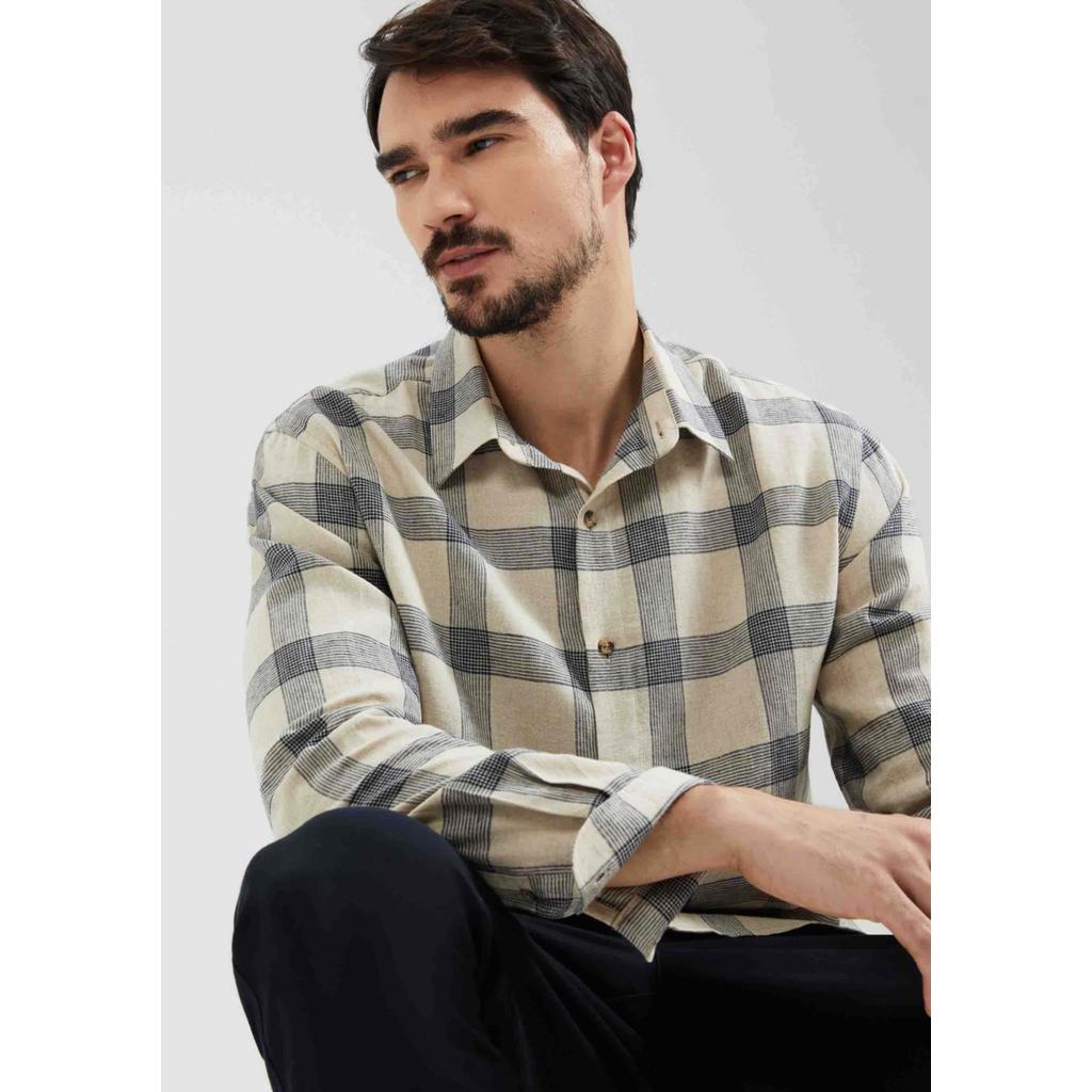 Camisa Masculina Manga Longa Xadrez Em Linho