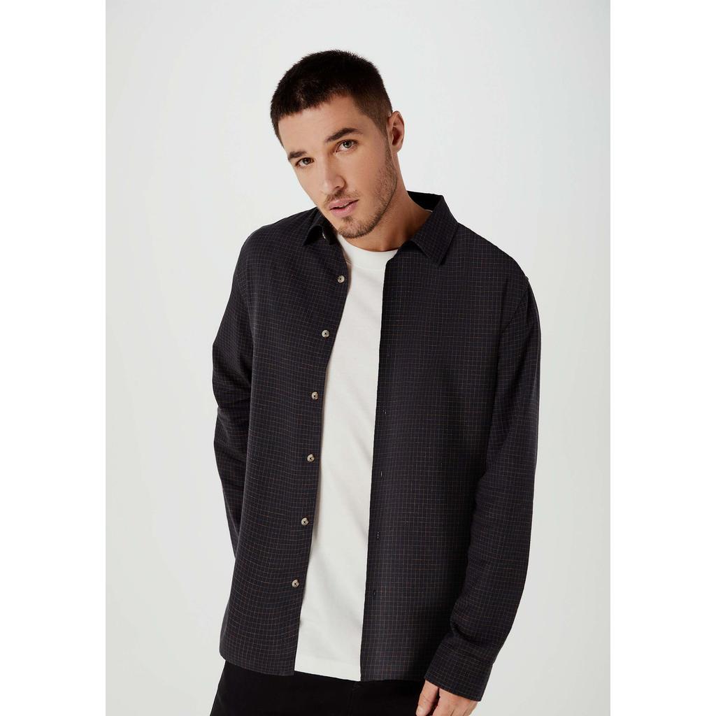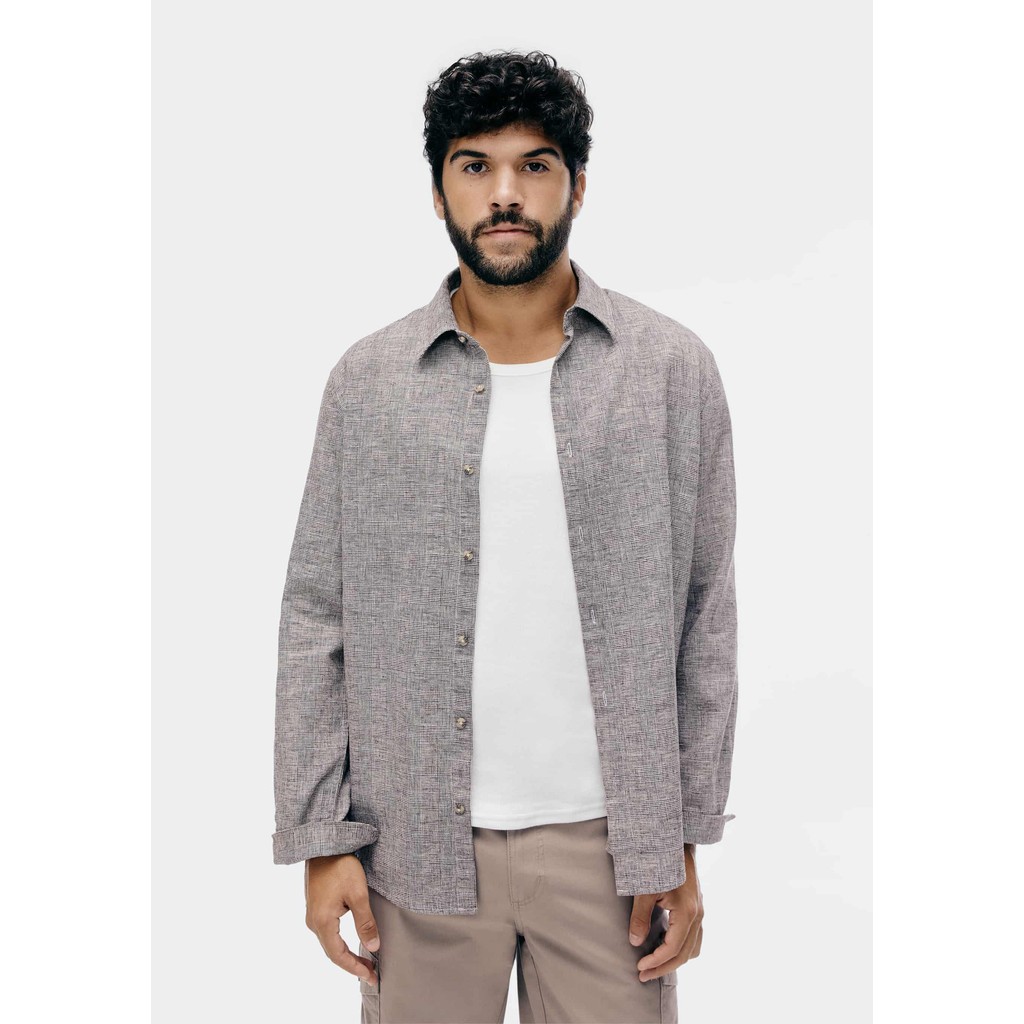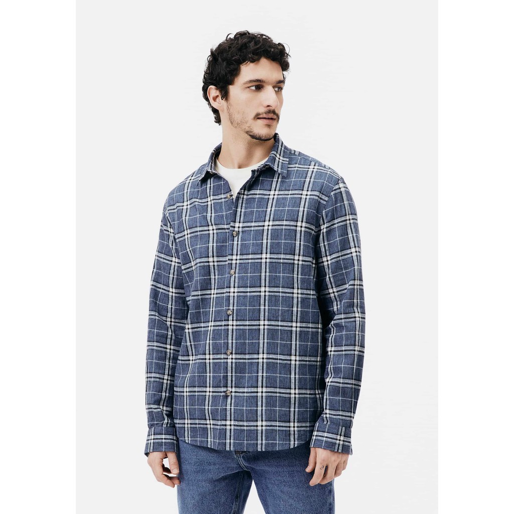Camisa Masculina Manga Longa Xadrez Em Linho