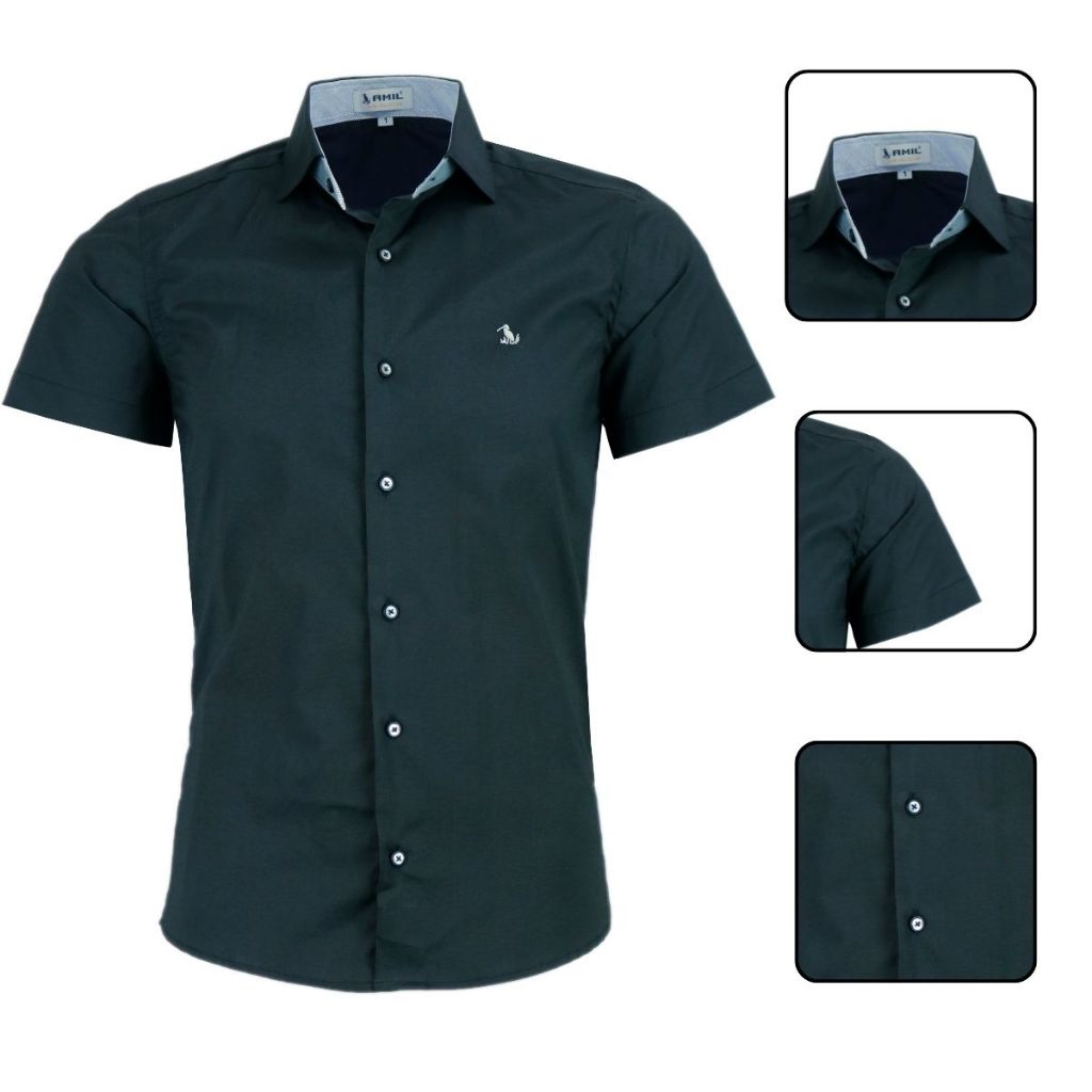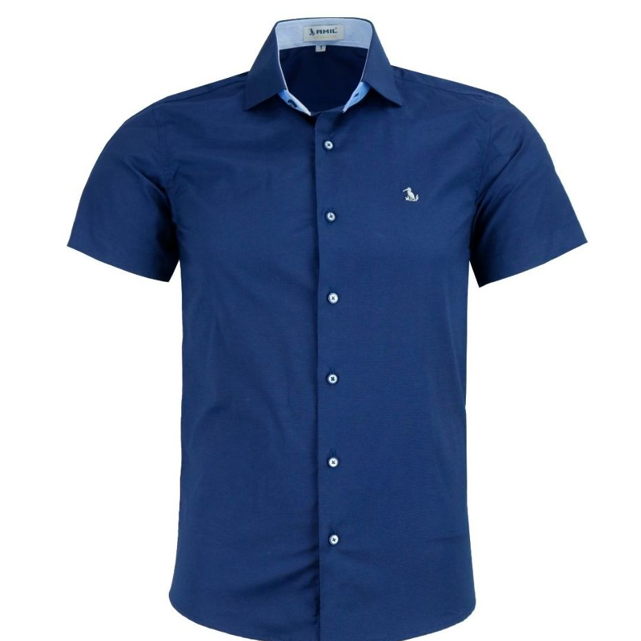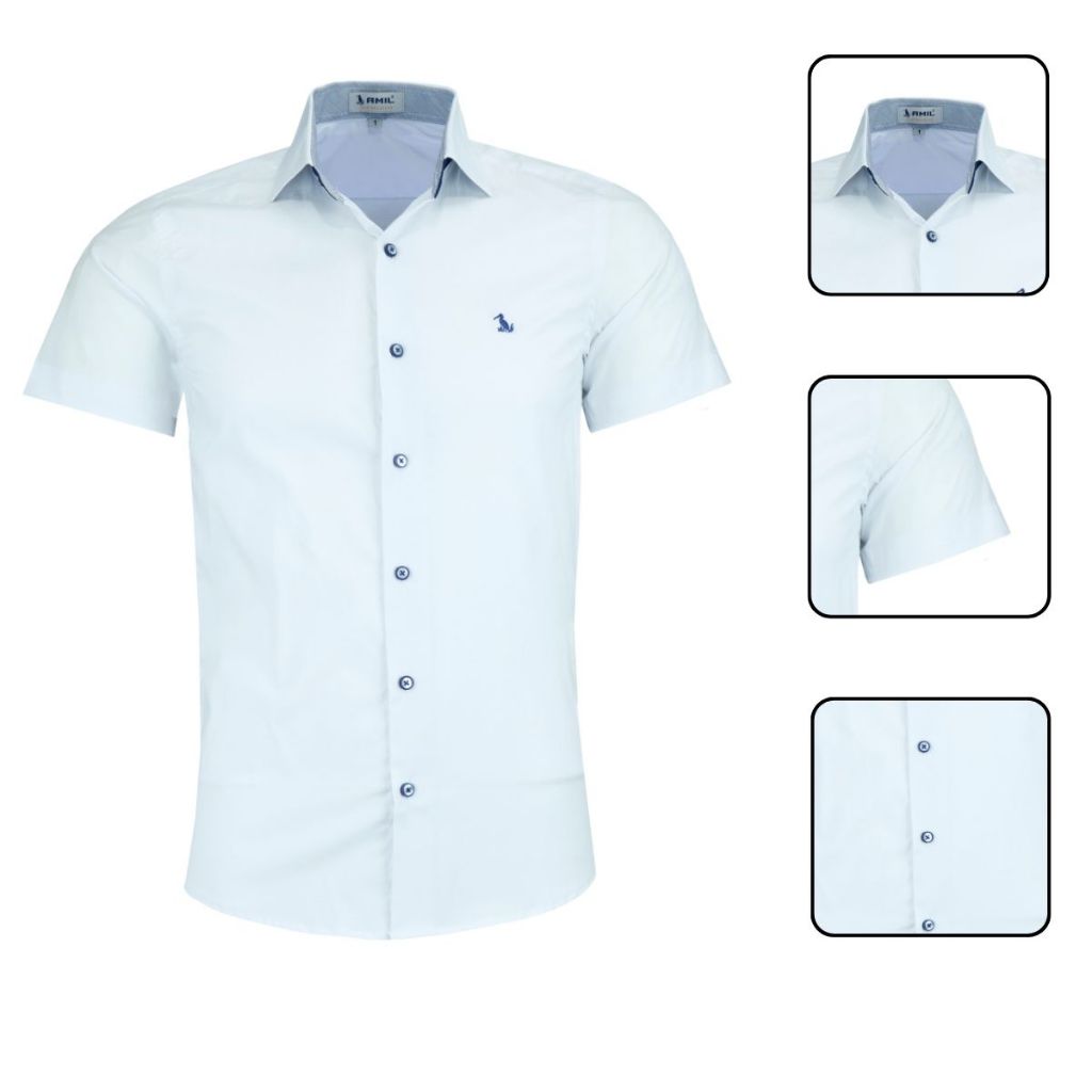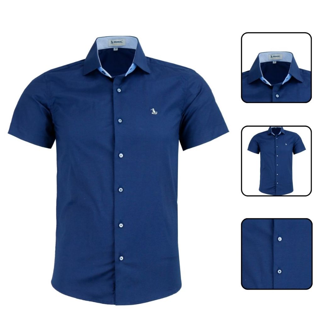 Camisa Social Amil Masculina Manga Curta Slim Luxo