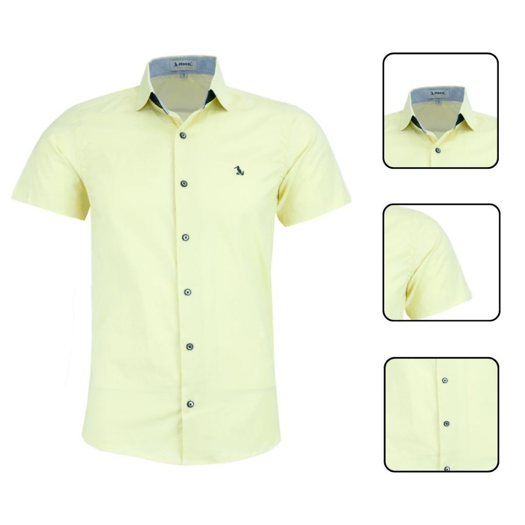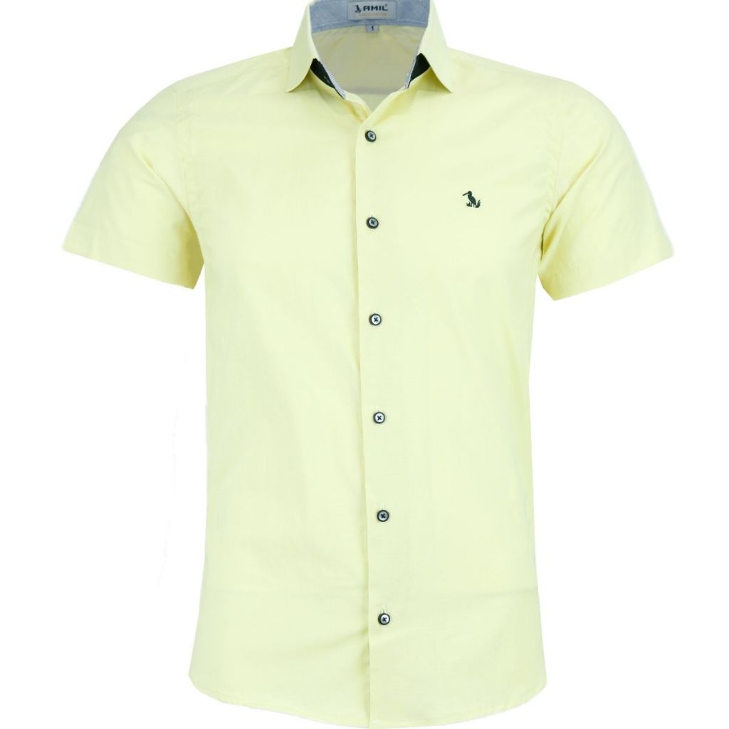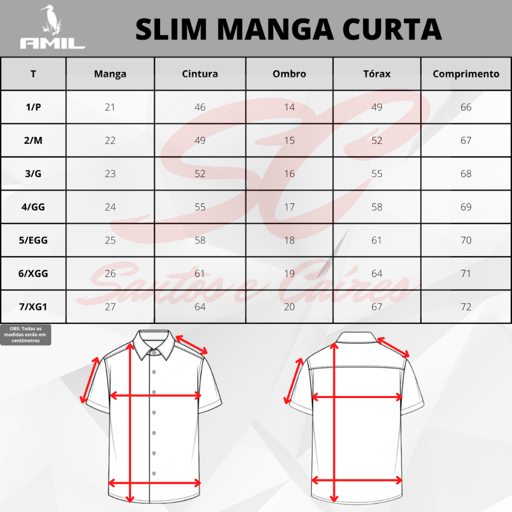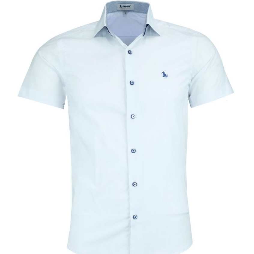 Camisa Social Amil Masculina Manga Curta Slim Luxo
