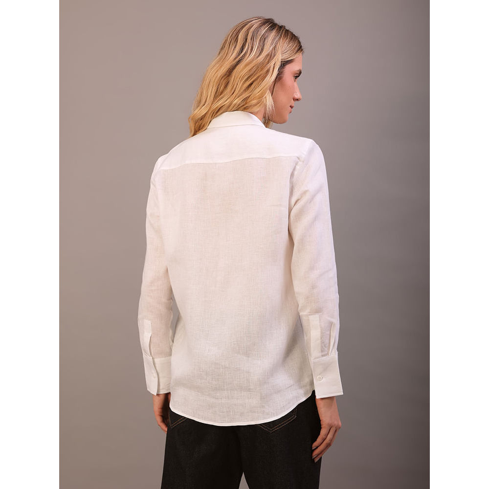 Camisa Social Feminina Manga Longa Básica de Linho Calvin Klein - Branco