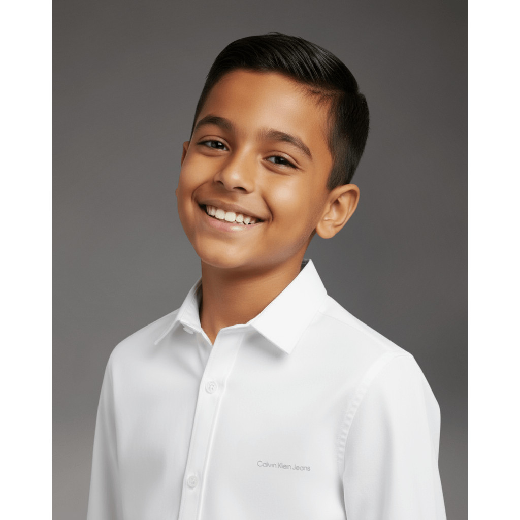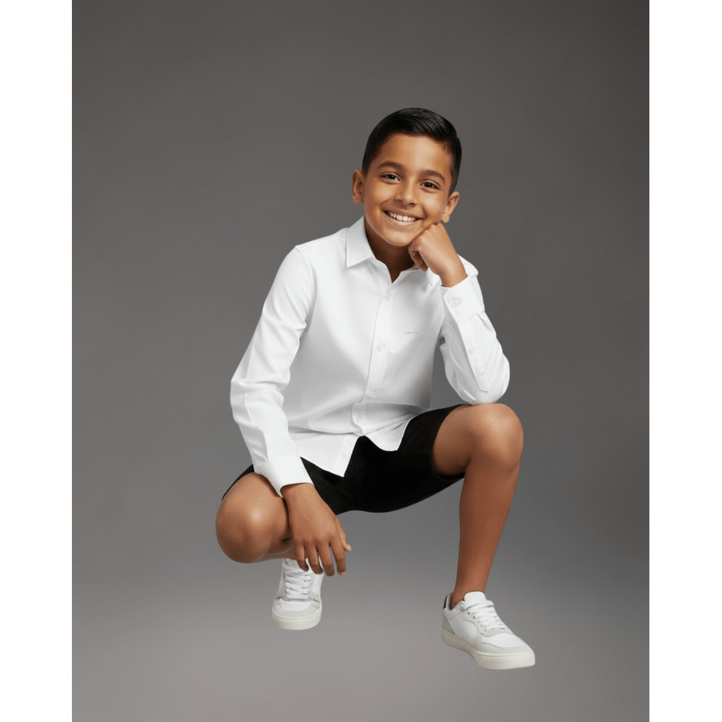 Camisa de Manga Longa Masculina Infantil Básica Estampa Assinatura Ckj Calvin Klein Jeans - Branco