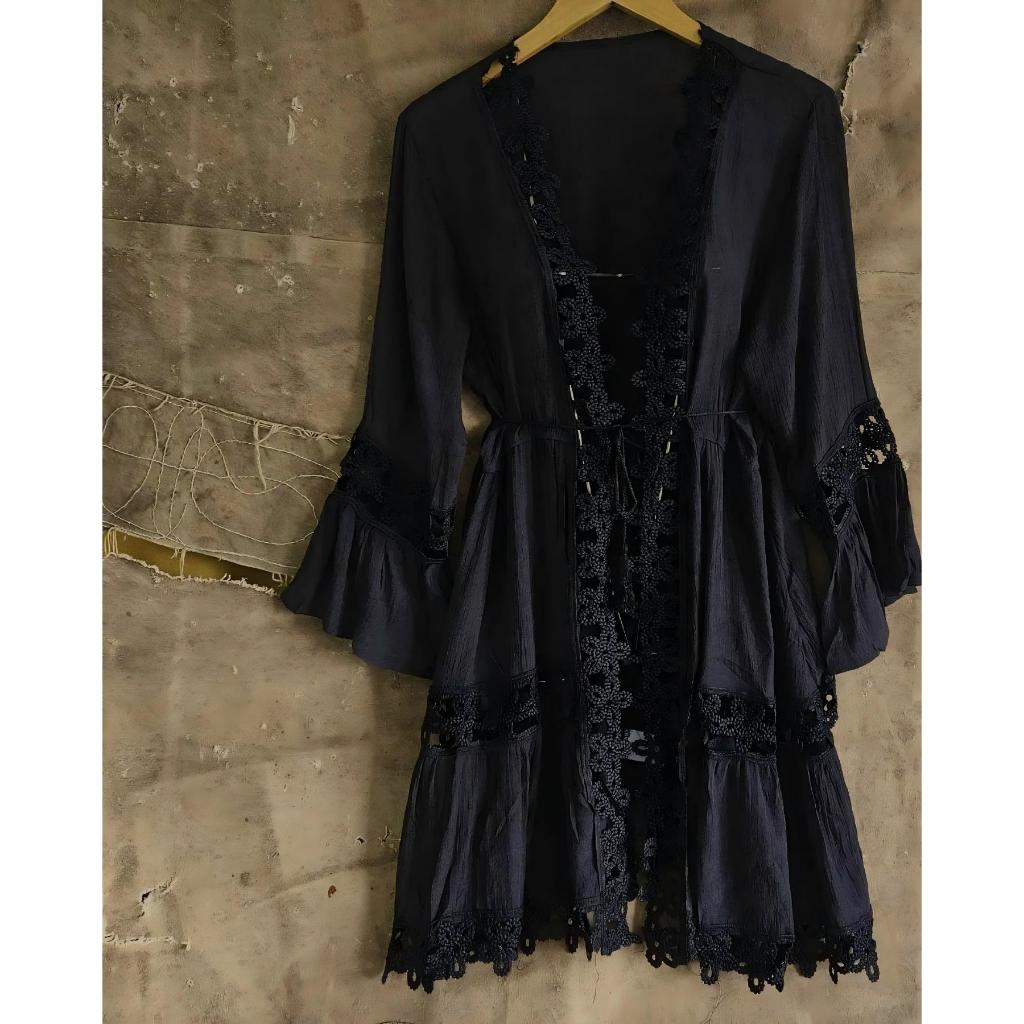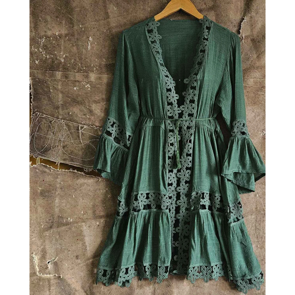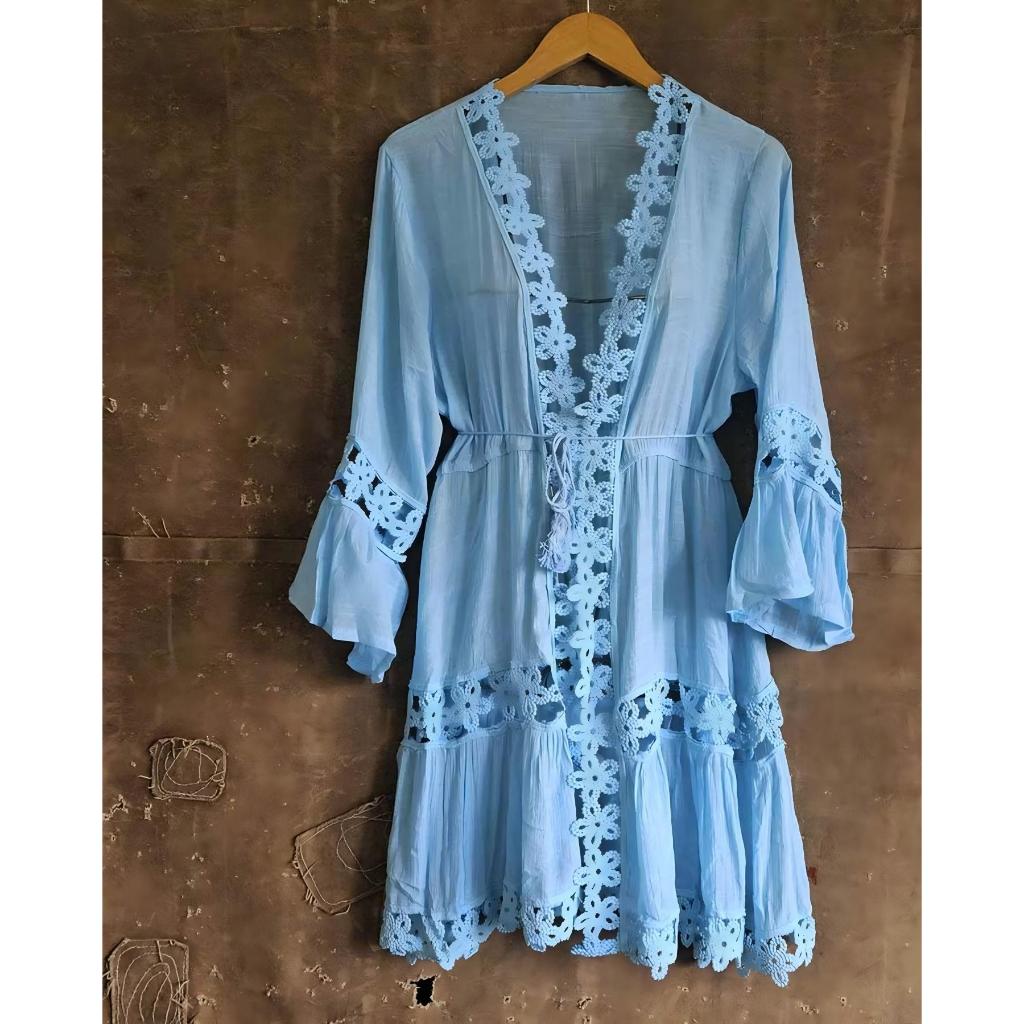 Camisa transparente de renda boêmia, saída de praia estilo biquíni, vestido com decote em V e mangas largas,Várias cores