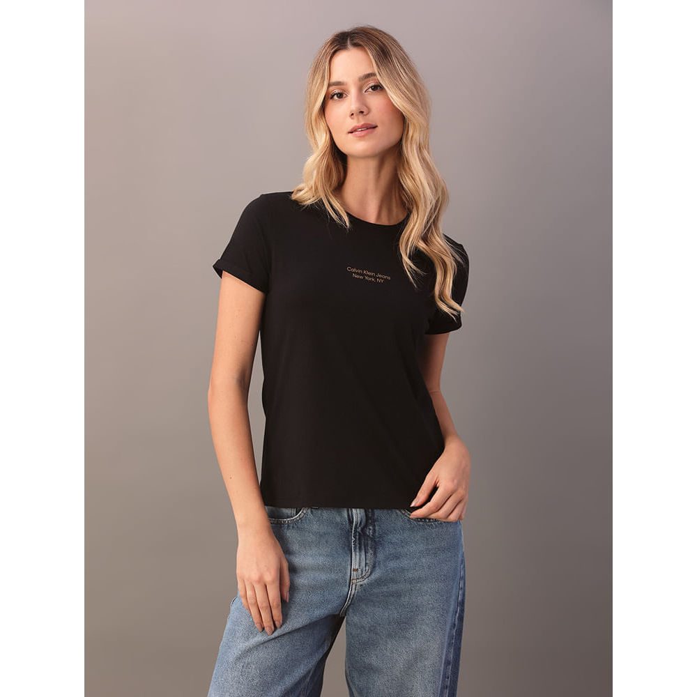 Camiseta Calvin Klein Jeans Feminino Organic Frase - Preto