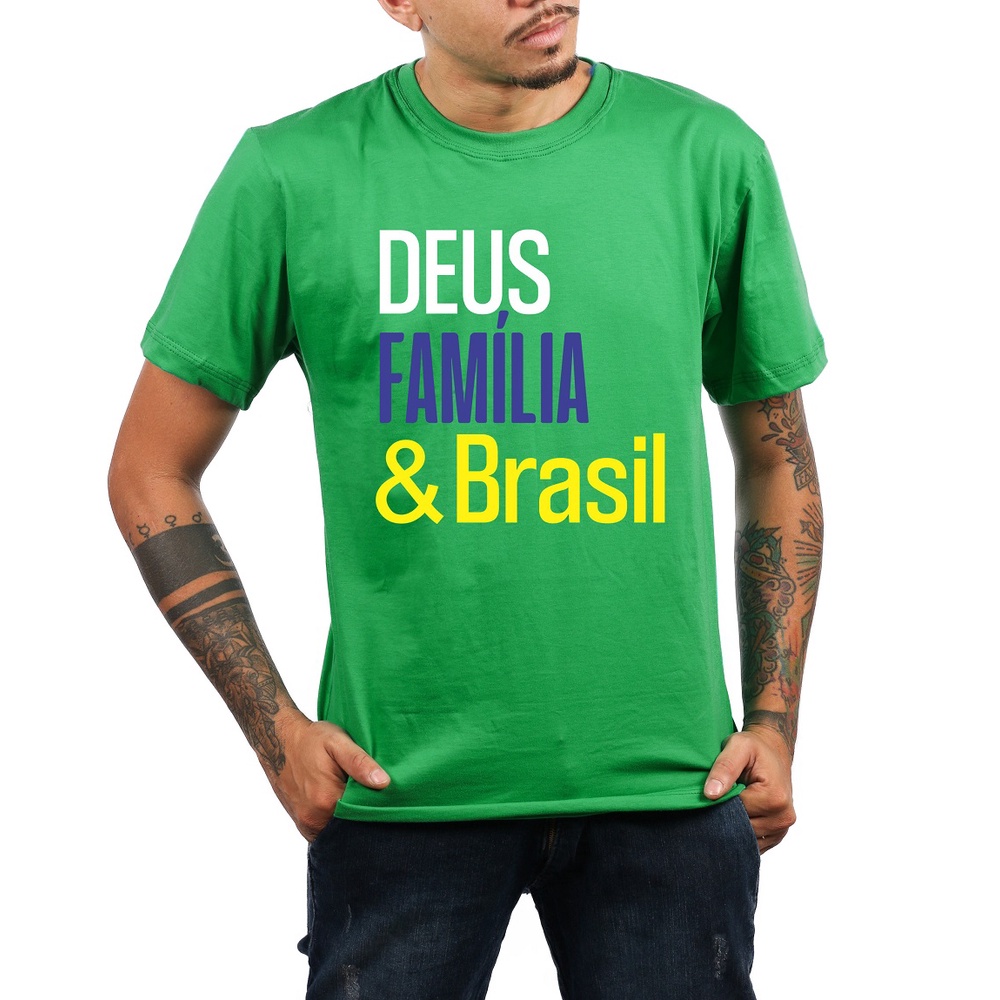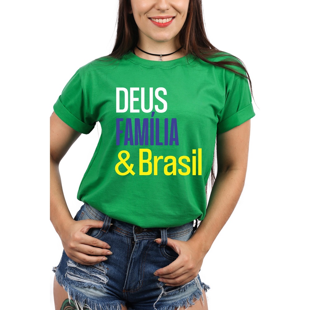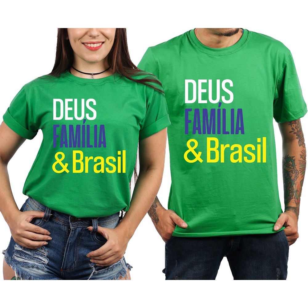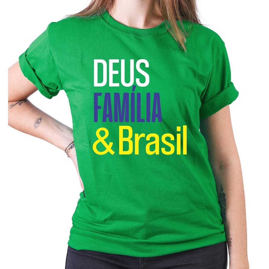 Camiseta Feminina Deus Família Brasil Mito Unissex Adulto e Infantil