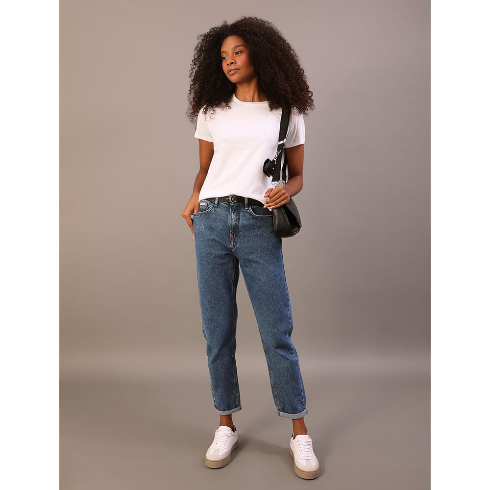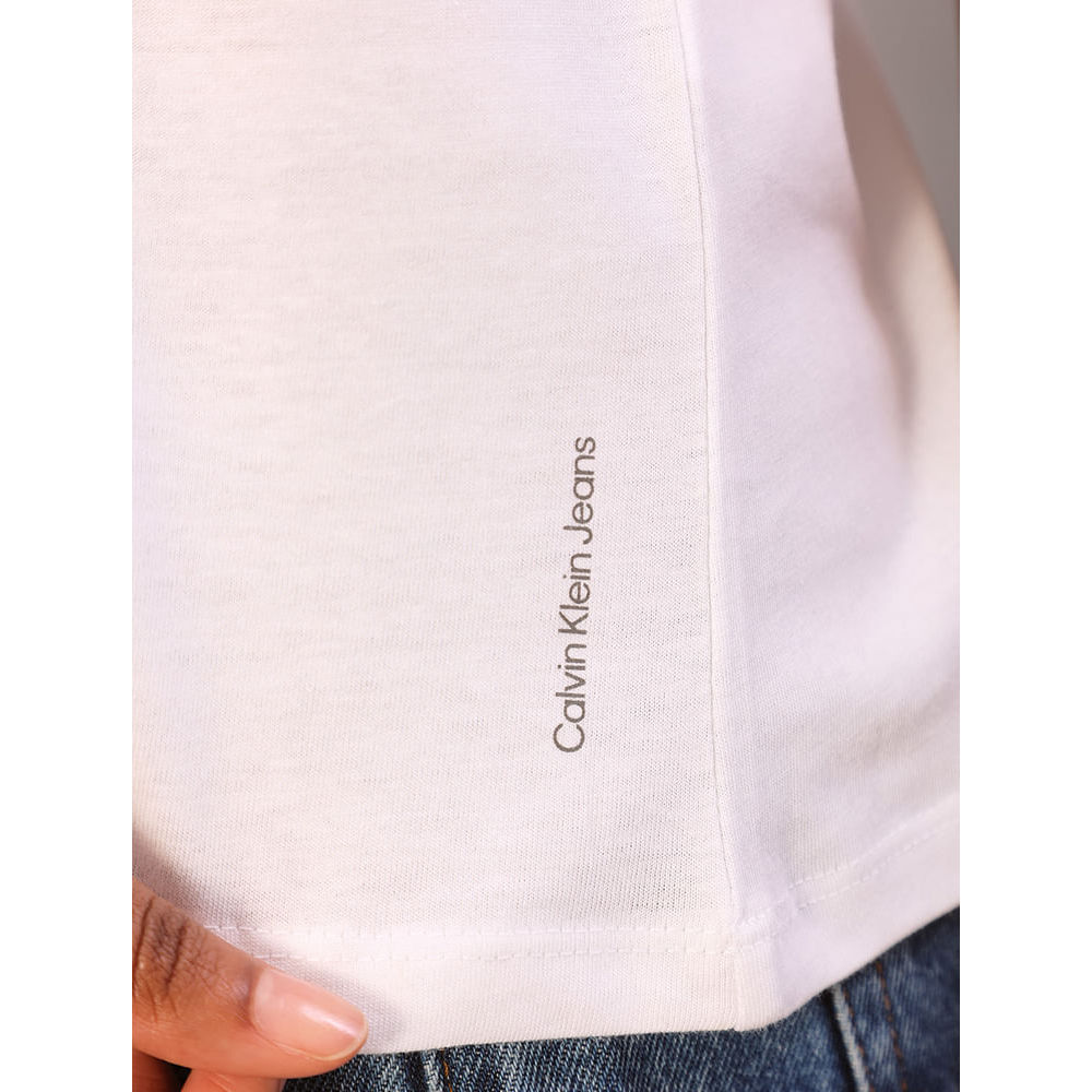Camiseta Feminina Essentials Estampa na Barra Calvin Klein Jeans - Branco