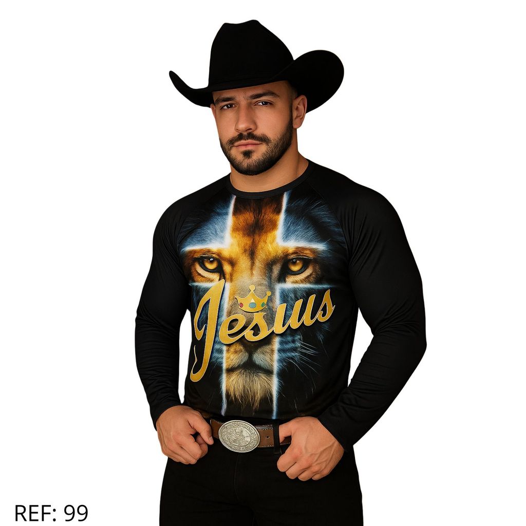 Camiseta Masculina e Feminina UV Estampa Religiosa Leão Judá Rei dos Reis King
