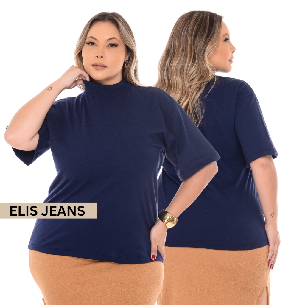 Camiseta Plus Size Feminina Gola Alta Blusa 100% Algodão T-shirt Básica