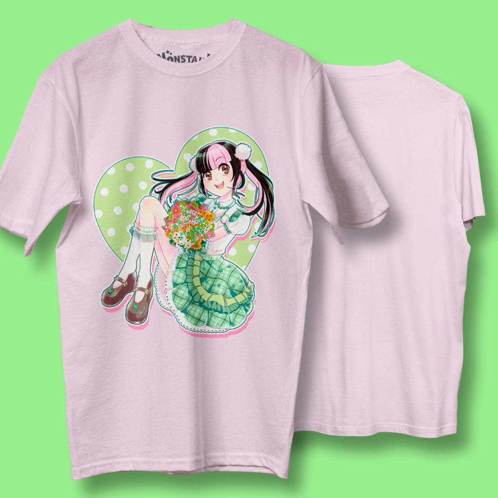 Camiseta básica rosa claro colaboração com Lunarun "Seu amuleto da sorte!"