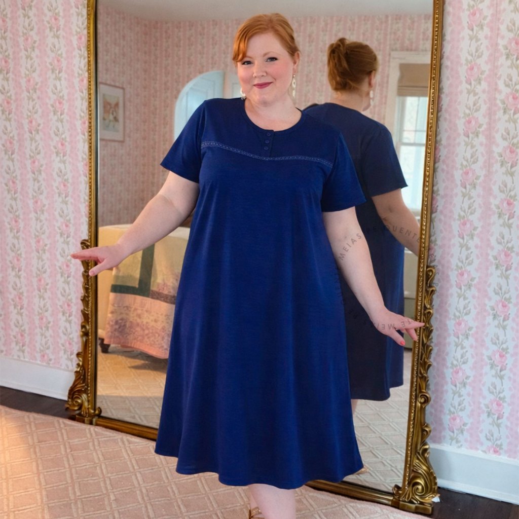 Camisola Adulta Senhora Pijama Feminino Vestido Malha Confortável Botão