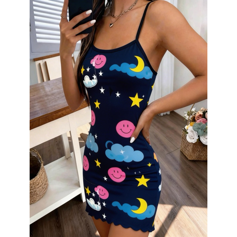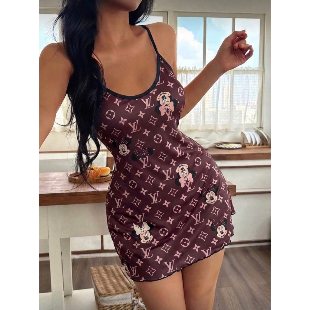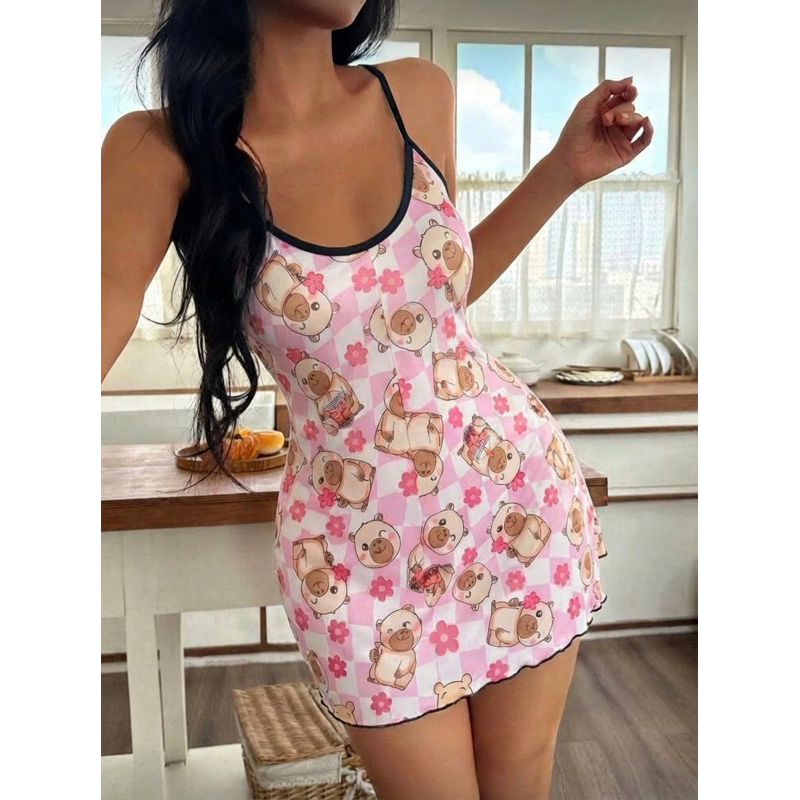 Camisola Estampas Fofas Feminino Vestido Suede Pijama Dormir