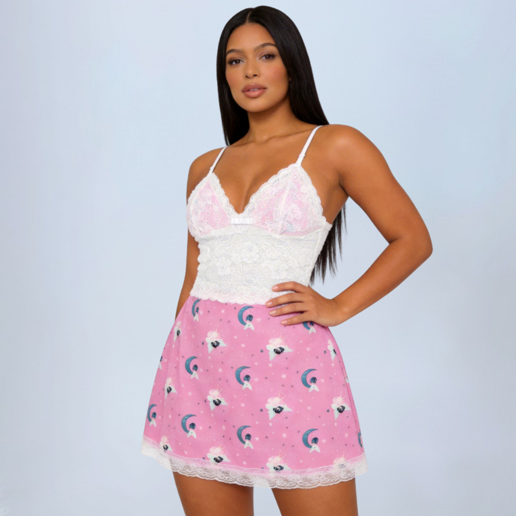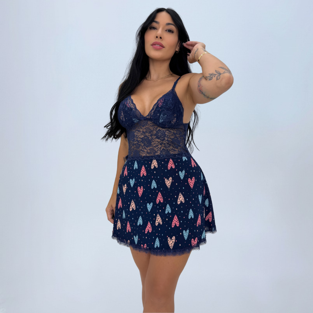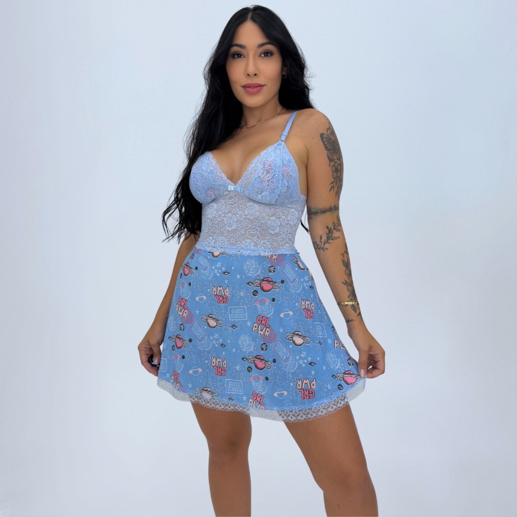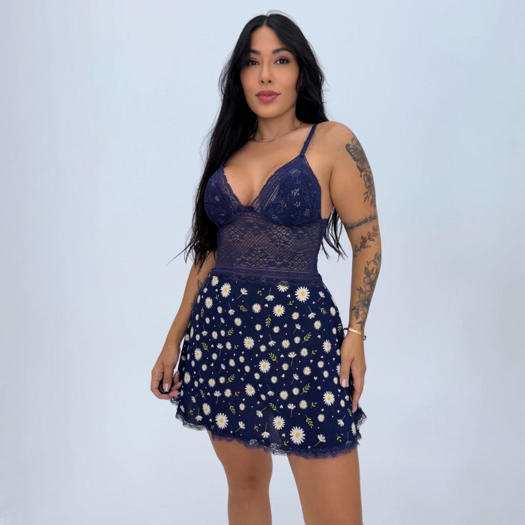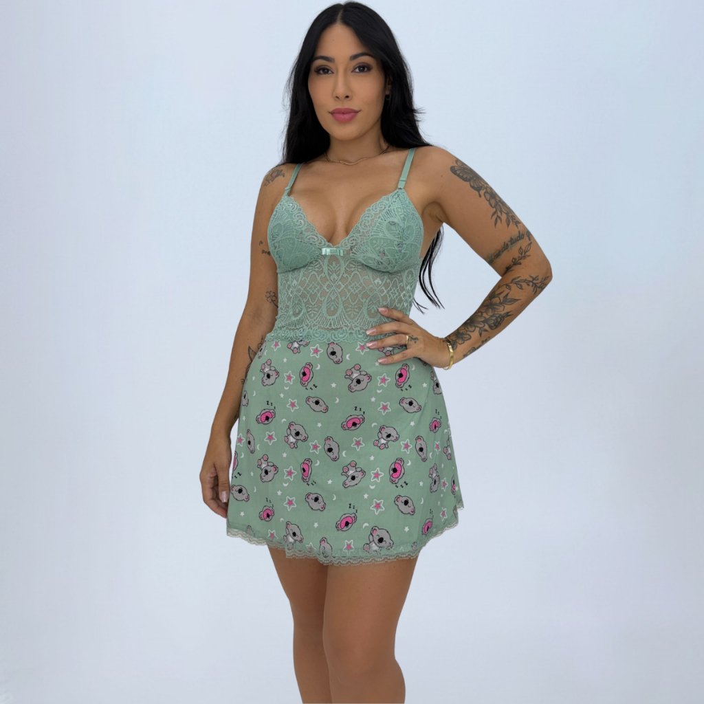 Camisola Feminina Estampada Sem Bojo Com Renda Lingerie Noite Confortável Para Dormir Pijama