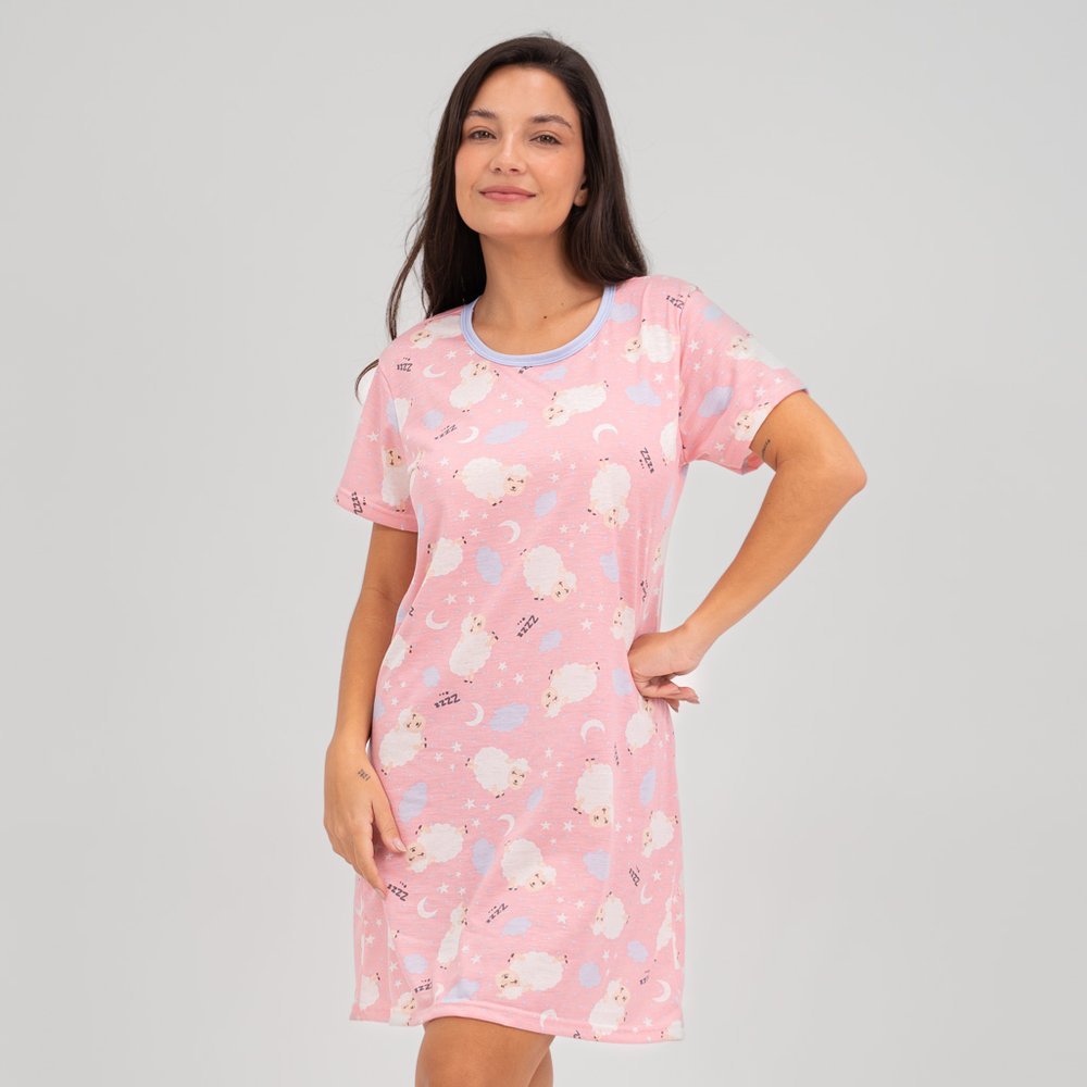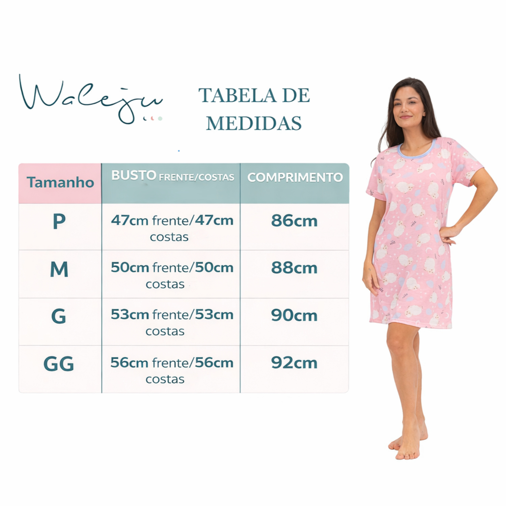 Camisola Feminina de Verão Ovelinha Leve Macia Confortável Dormir P ao GG