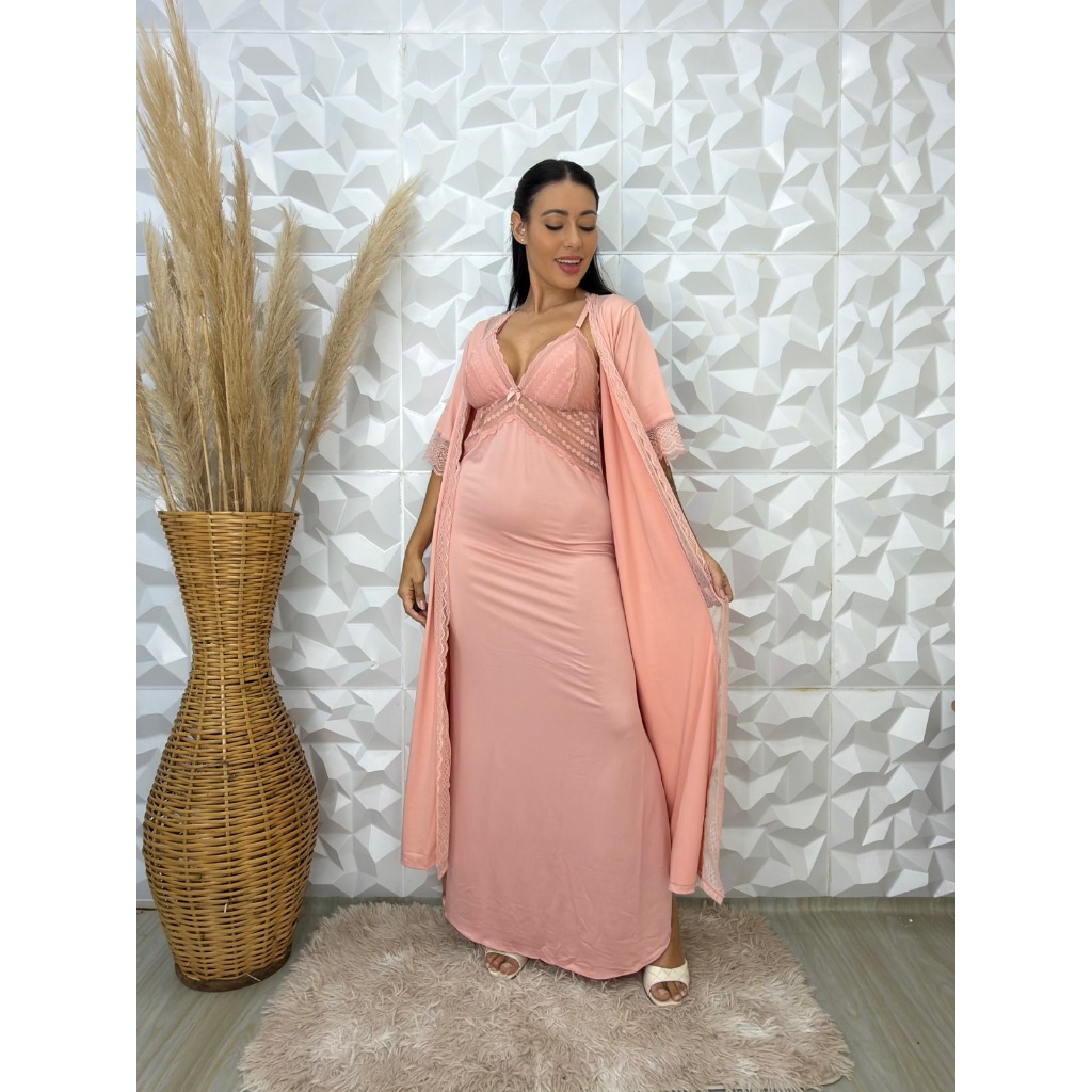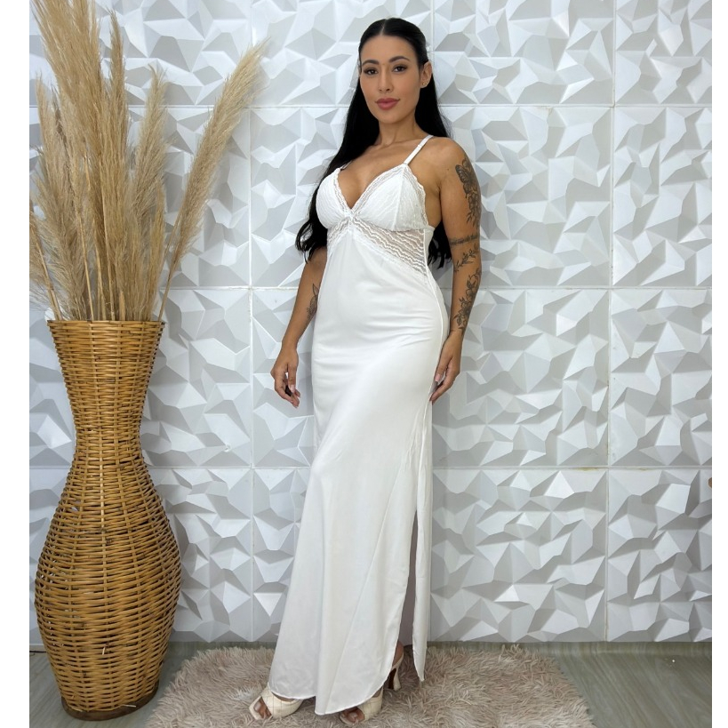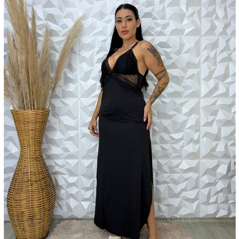 Camisola Longa Rendada em Microfibra Pijama Linha Noite