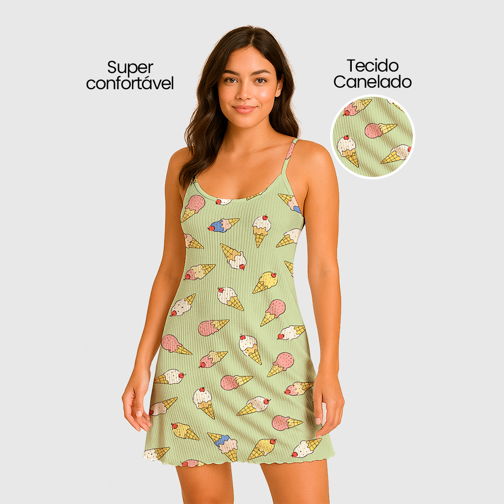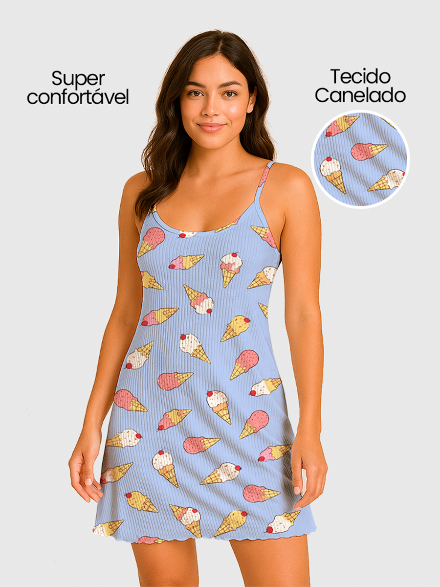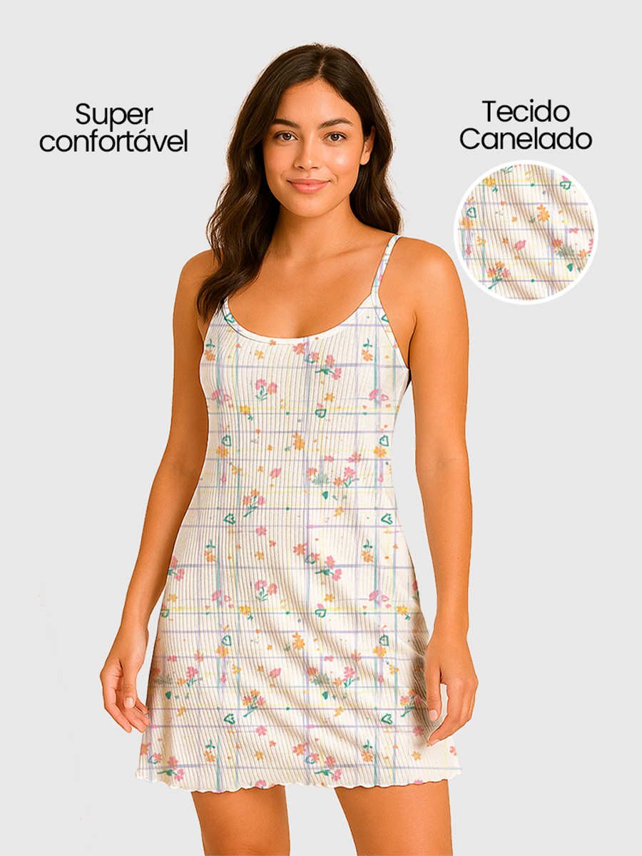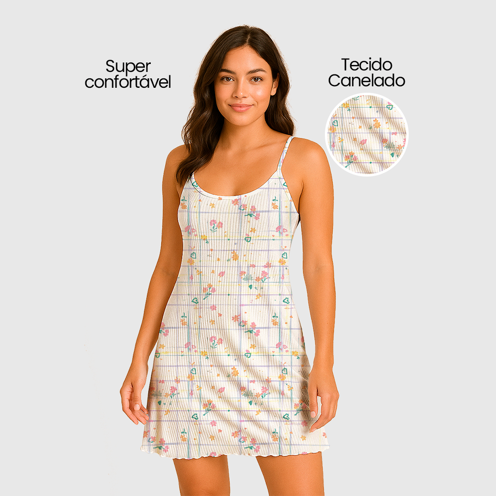 Camisola Pijama Feminino Estampada Tecido em Suede Canelado - P, M, G, GG