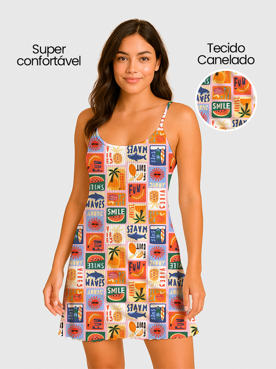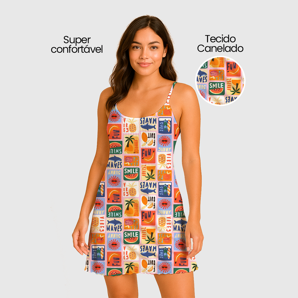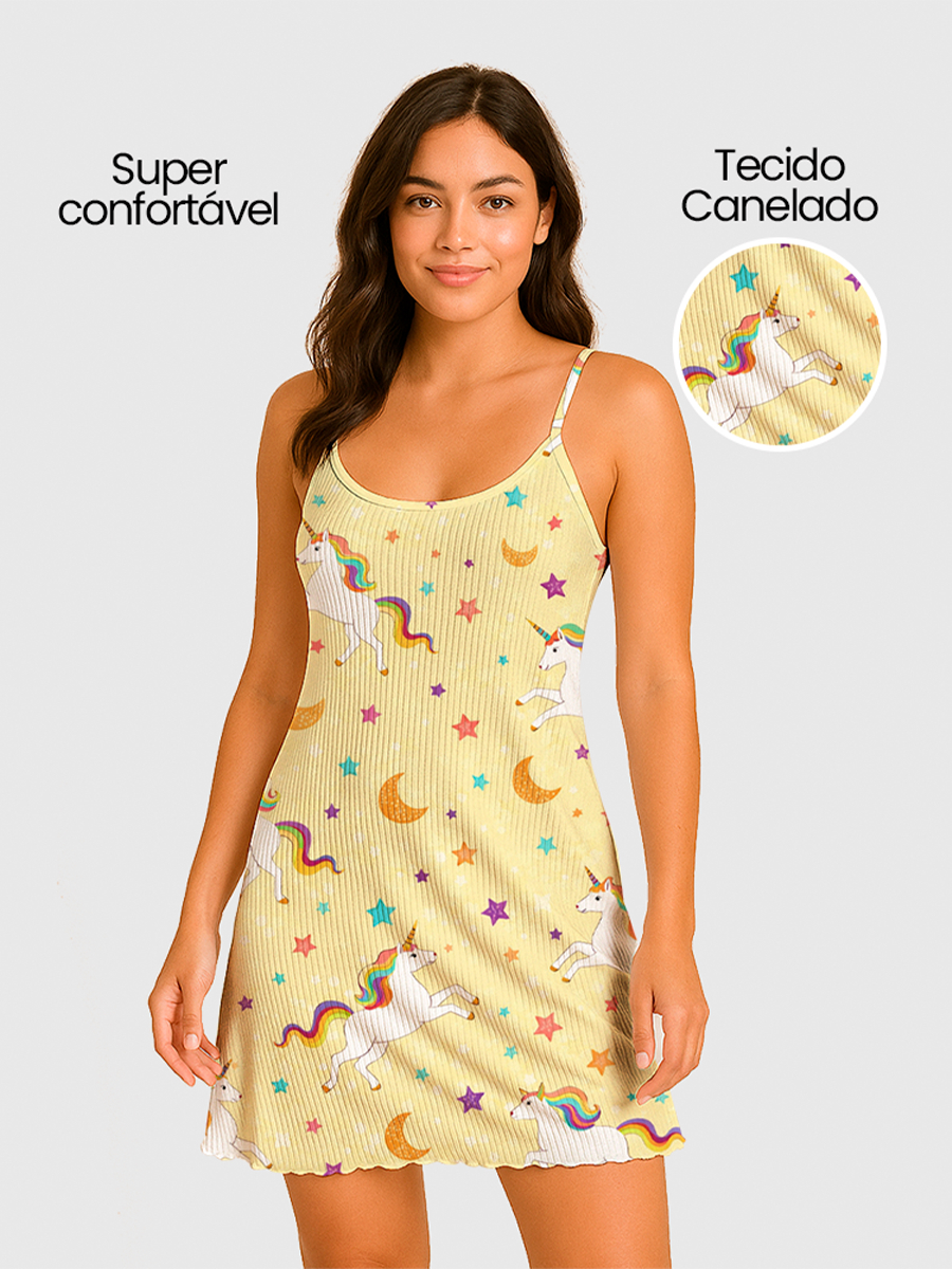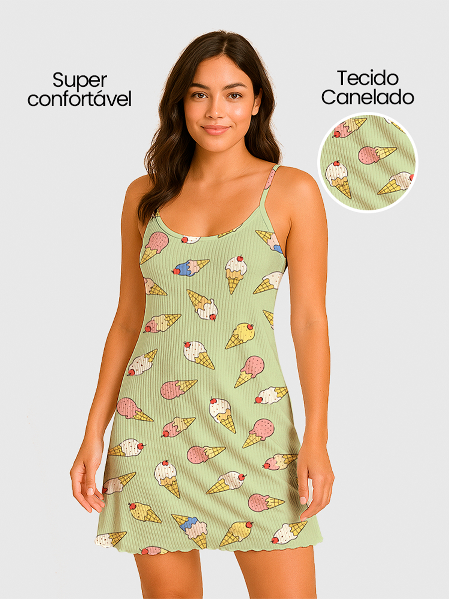 Camisola Pijama Feminino Estampada Tecido em Suede Canelado - P, M, G, GG