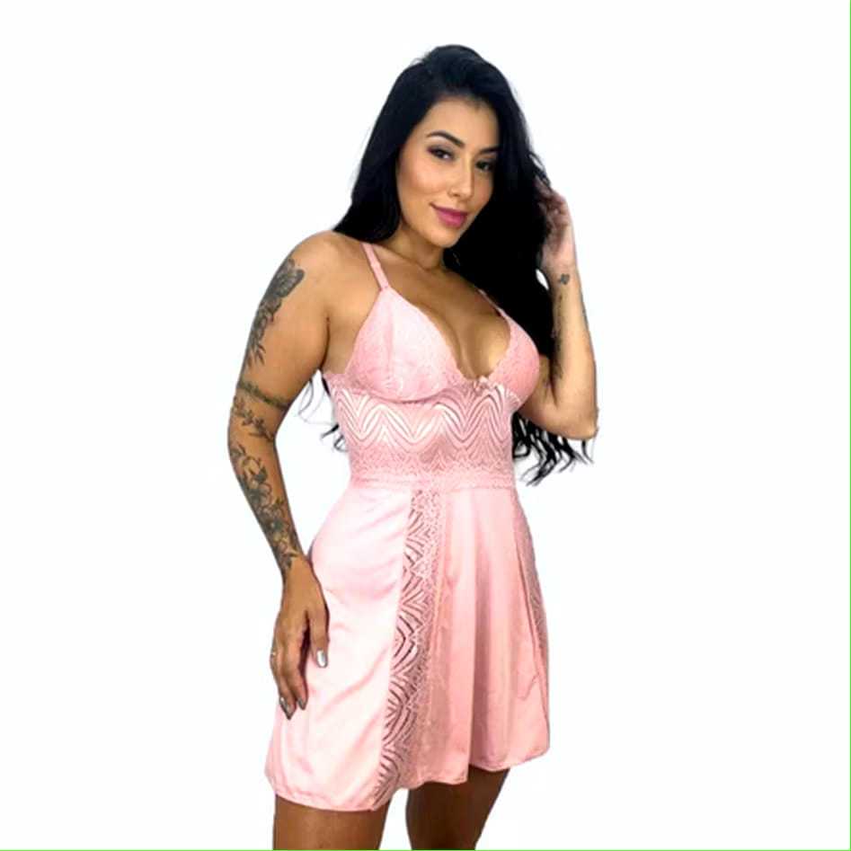 Camisola Romântica Sexy Rendada Sem Bojo Em Microfibra Cruzado Nas Costas