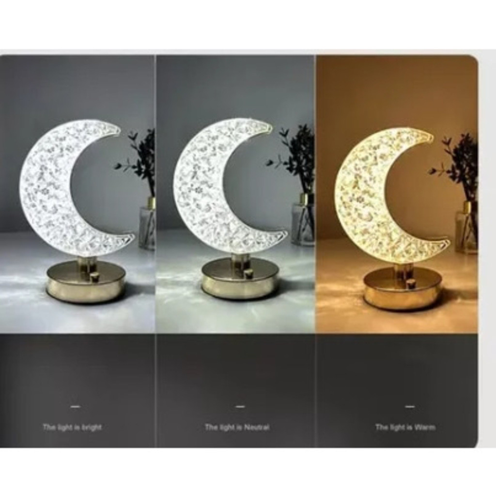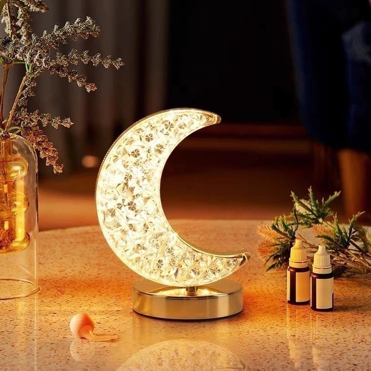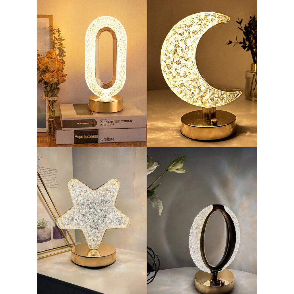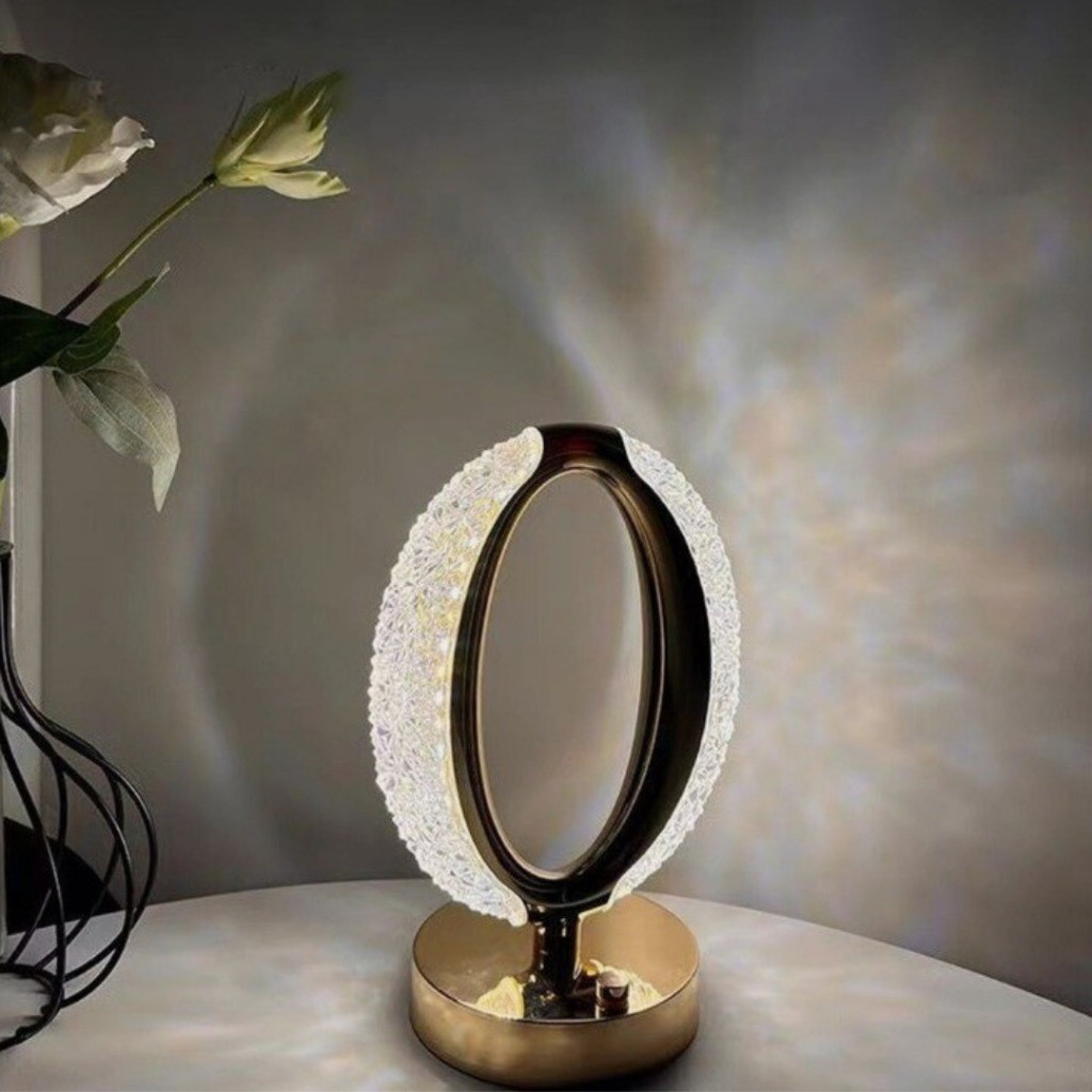 Candeeiro de mesa luxuoso de cristal acrílico para quarto com 3 cortinas LED