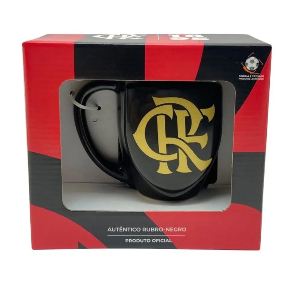 Caneca Flamengo CRF 3D Porcelana Preto 270ml