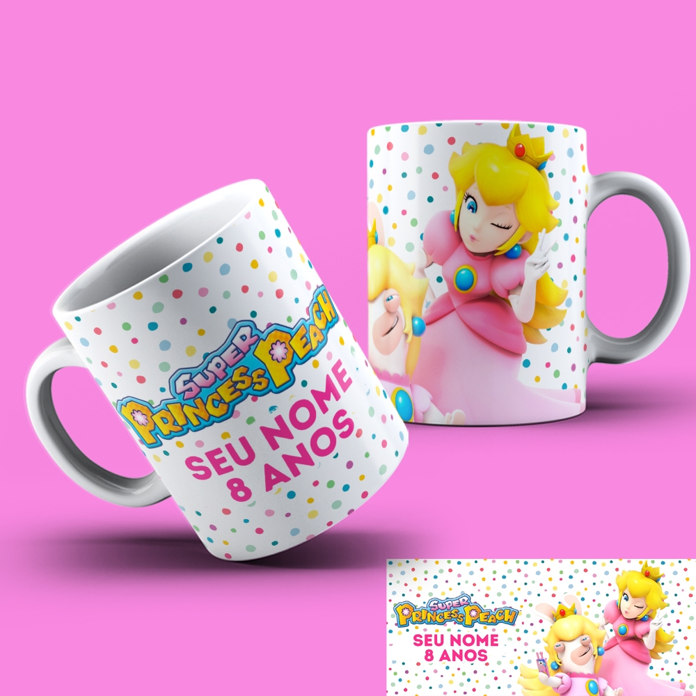 Caneca Princesa Peach Personalizada com Nome e Idade (Opicional) 35 Modelos Princess Peach Showtime