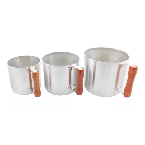 Caneco de Alumínio Batido Cabo de Madeira Leiteira Fervedor