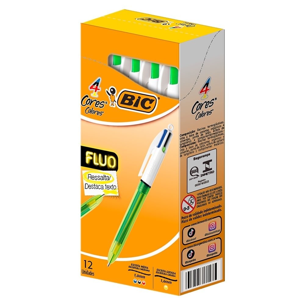 Caneta Bic 4 Cores Fluorescente - Embalagem com 12 Unidades