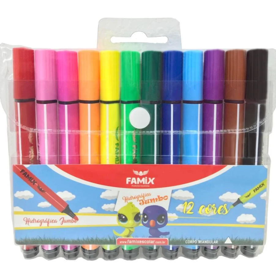 Caneta Colorida Kit 12 cores Para Colorir Bobbie Goods Hidrográfica Jumbo Triangular