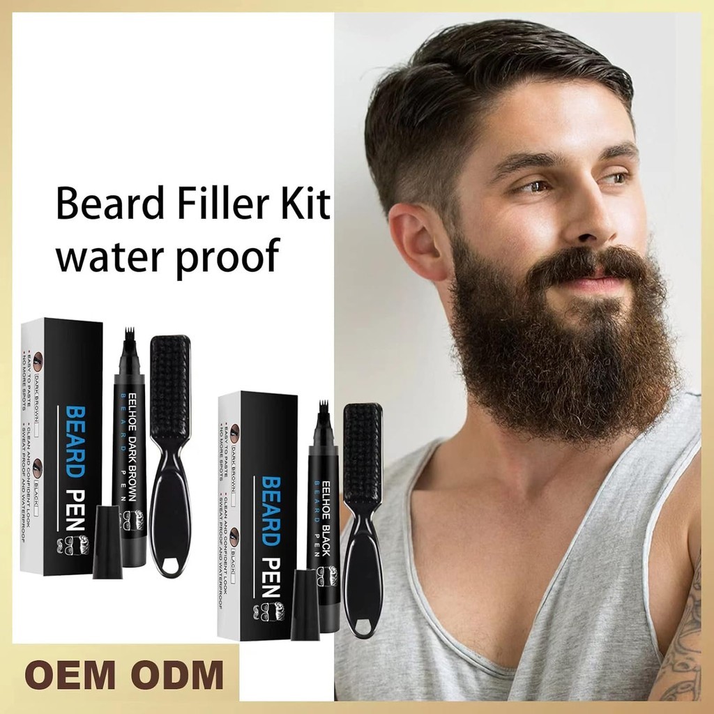 Caneta Preenchedora de Barba de Longa Duração para Homens - À Prova d'Água, Preenche e Modela Bigode, Barba e