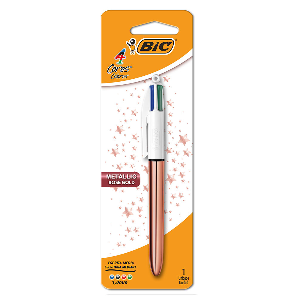 Caneta esferográfica 1.0 retrátil Rose Gold 4 cores Bic