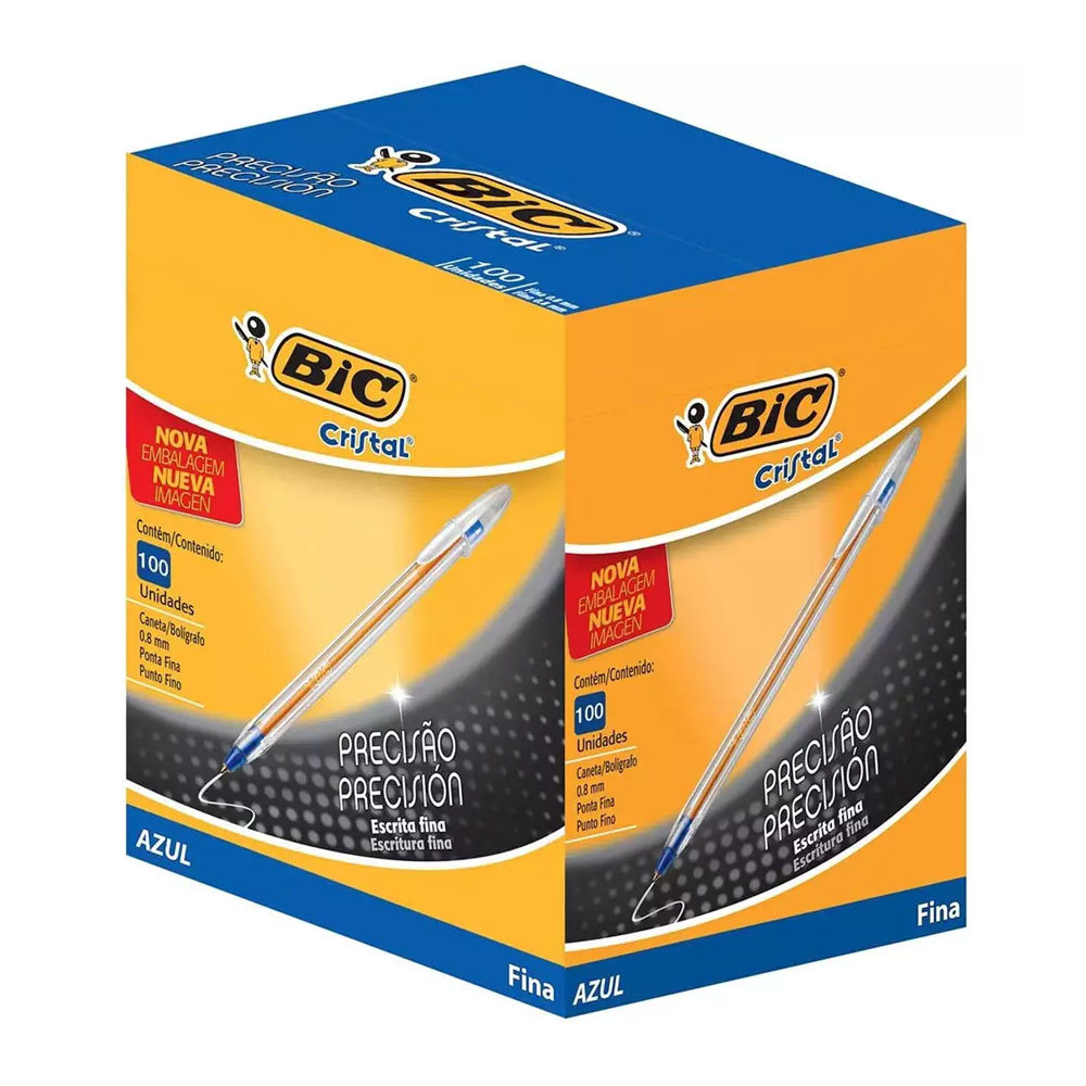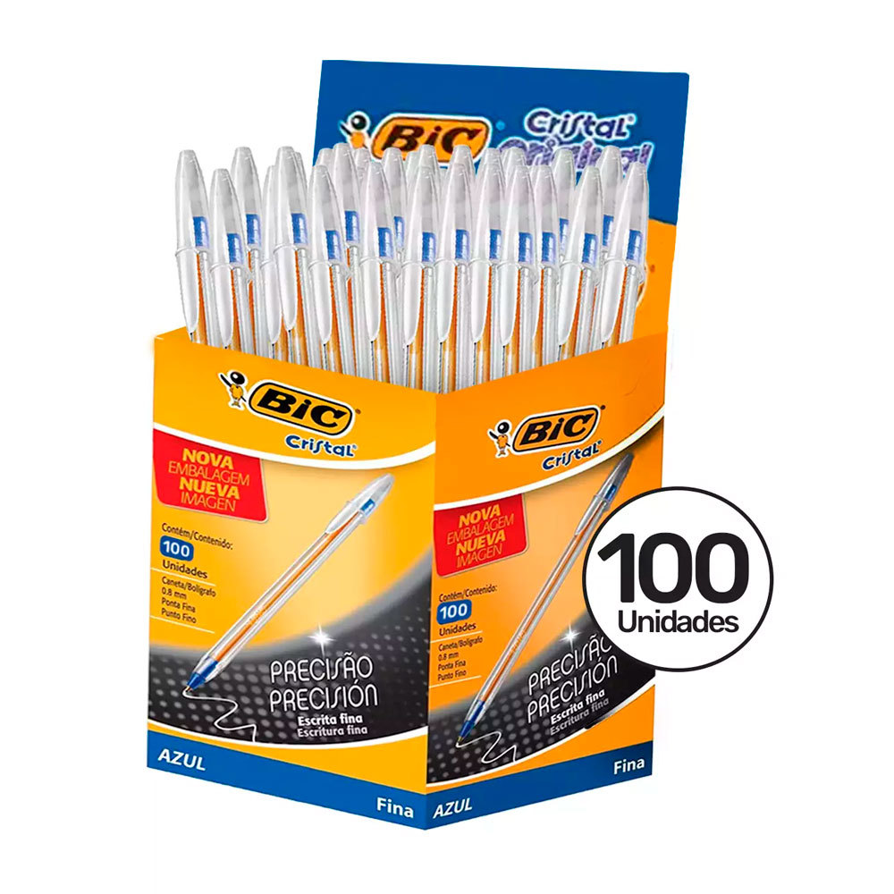 Caneta esferográfica Cristal fina Azul caixa com 100 unidades Bic