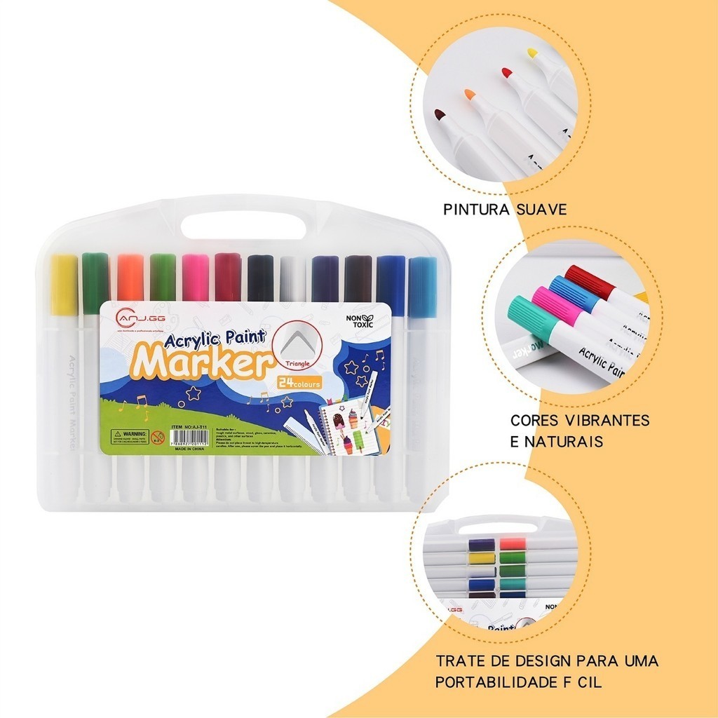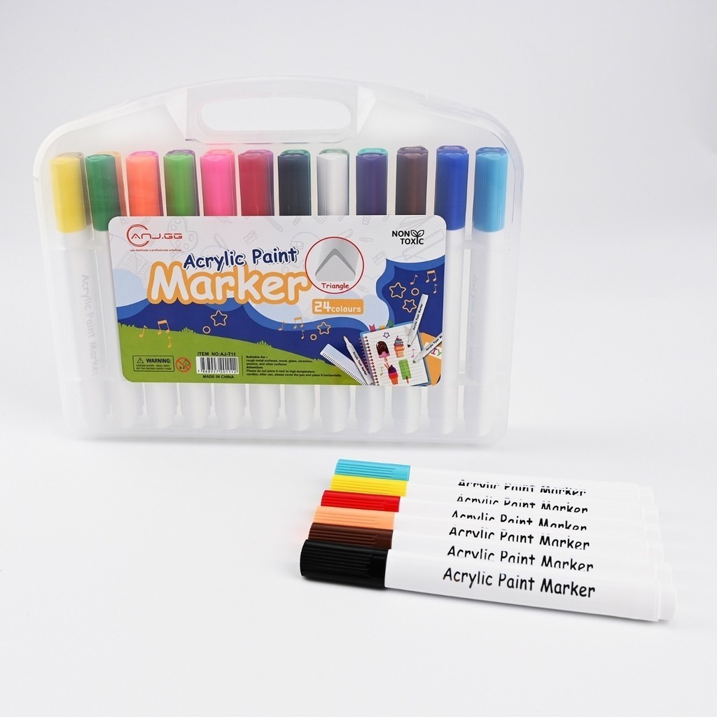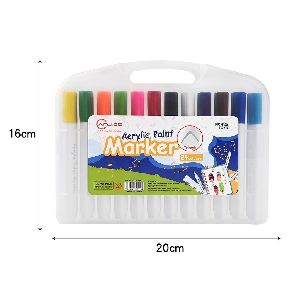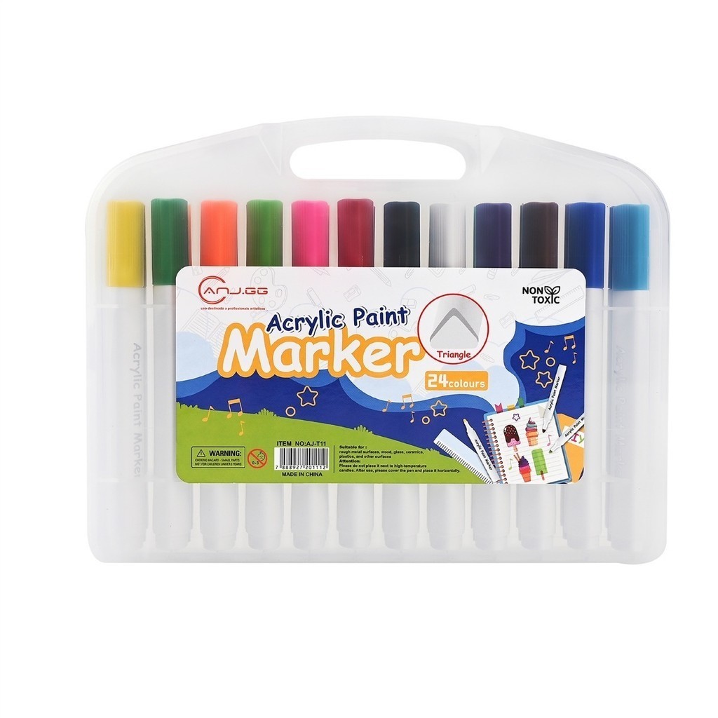 Caneta marcadora acrílica 24 cores à prova d'água pincel especial cor opaca caneta de cartão antiga caneta colo