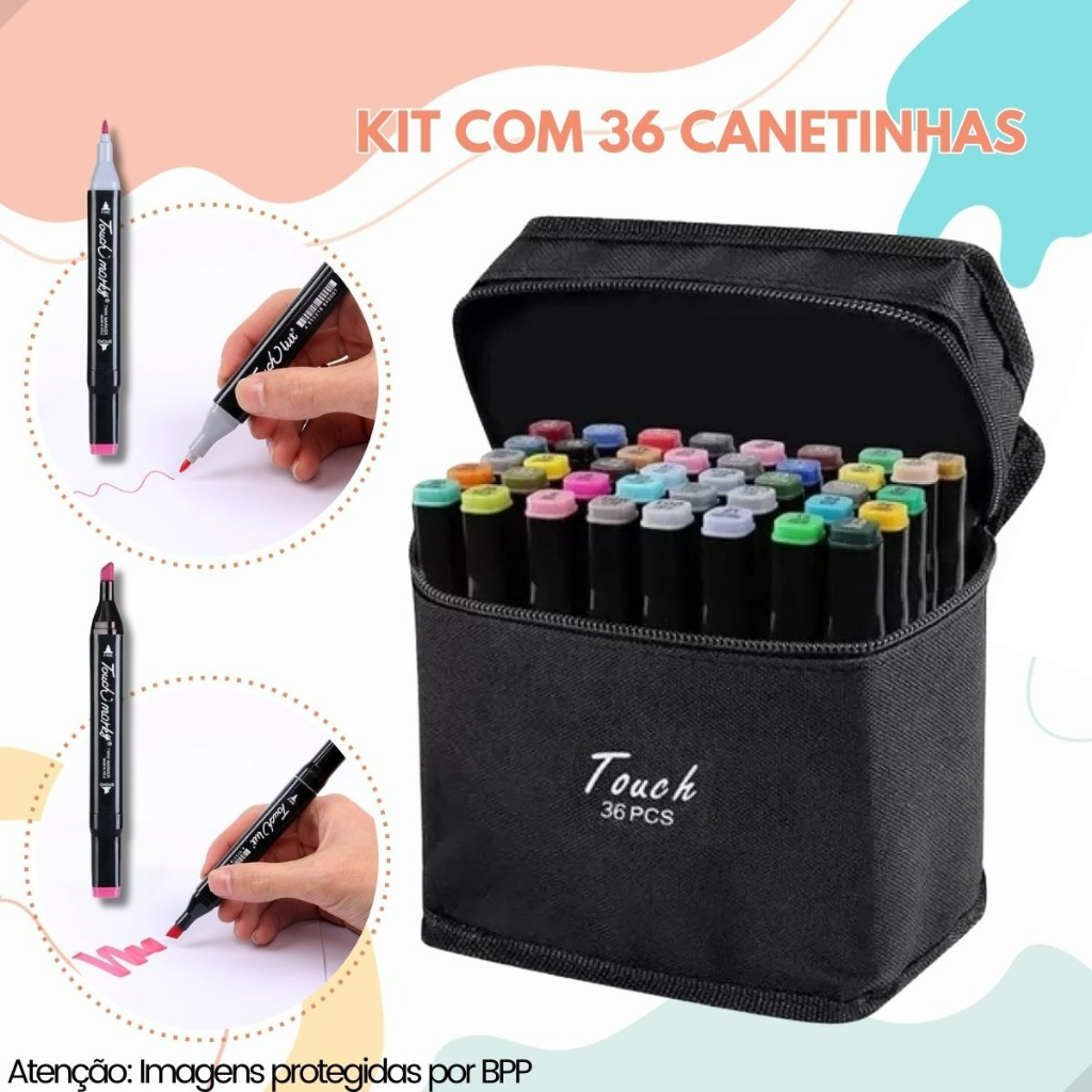 Canetas Touch Estojo Com 36 Cores Pontas Duplas Para Pintura Bob Good
