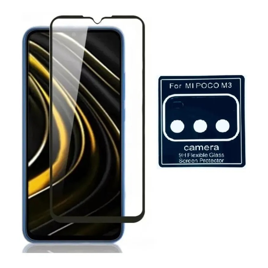 Kit Capa Capinha Anti Shock Xiaomi Poco M3 + Pelicula Vidro 3D+Pelicula Camera 3D