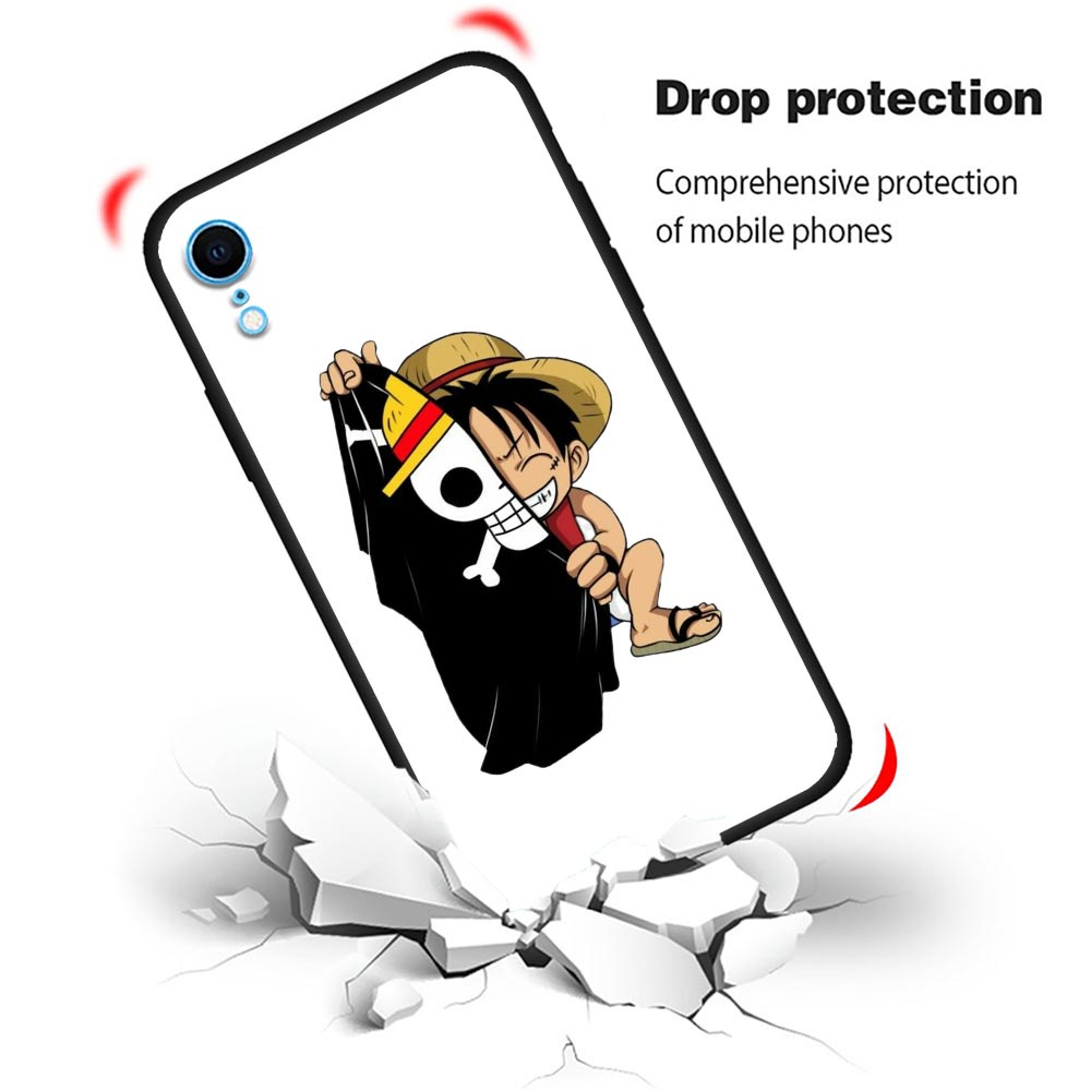 Capa De Silicone Macia Preta Anime One Piece Luffy Ace Para iPhone 11 12 13 Pro Max Mini