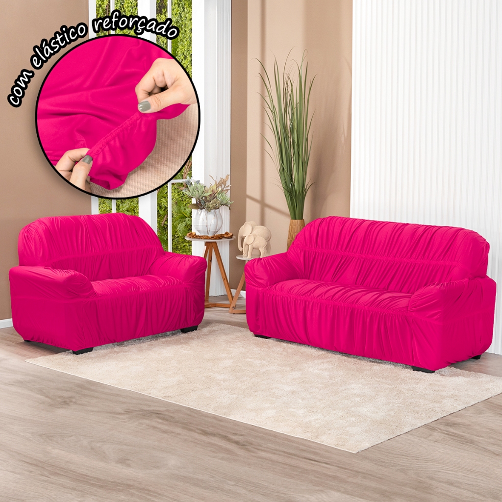 Capa De Sofá 3 E 2 Lugares 21 Elásticos Malha Gel Protetor