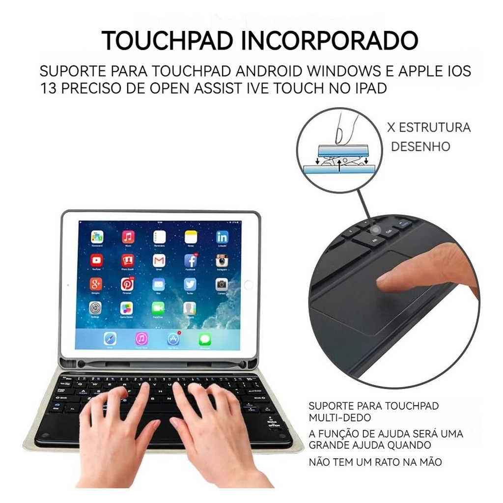 Capa E Teclado Touch Para iPad 6ª/5ª Geração 9,7 Polegadas