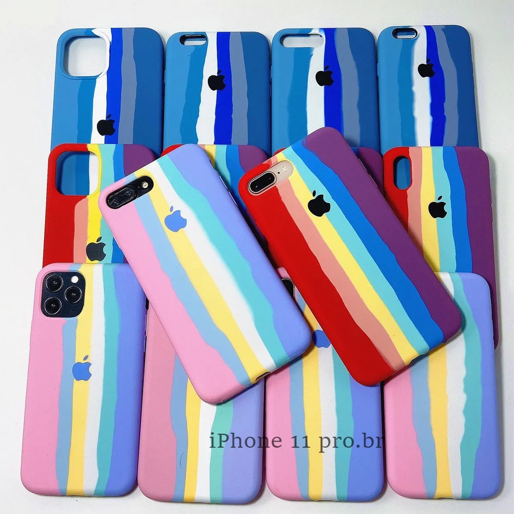Iphone Capa Flexível De Silicone Laço-Íris Para Celular 12Pro MAX/11/X/Xr/Xs/7/8 Plus