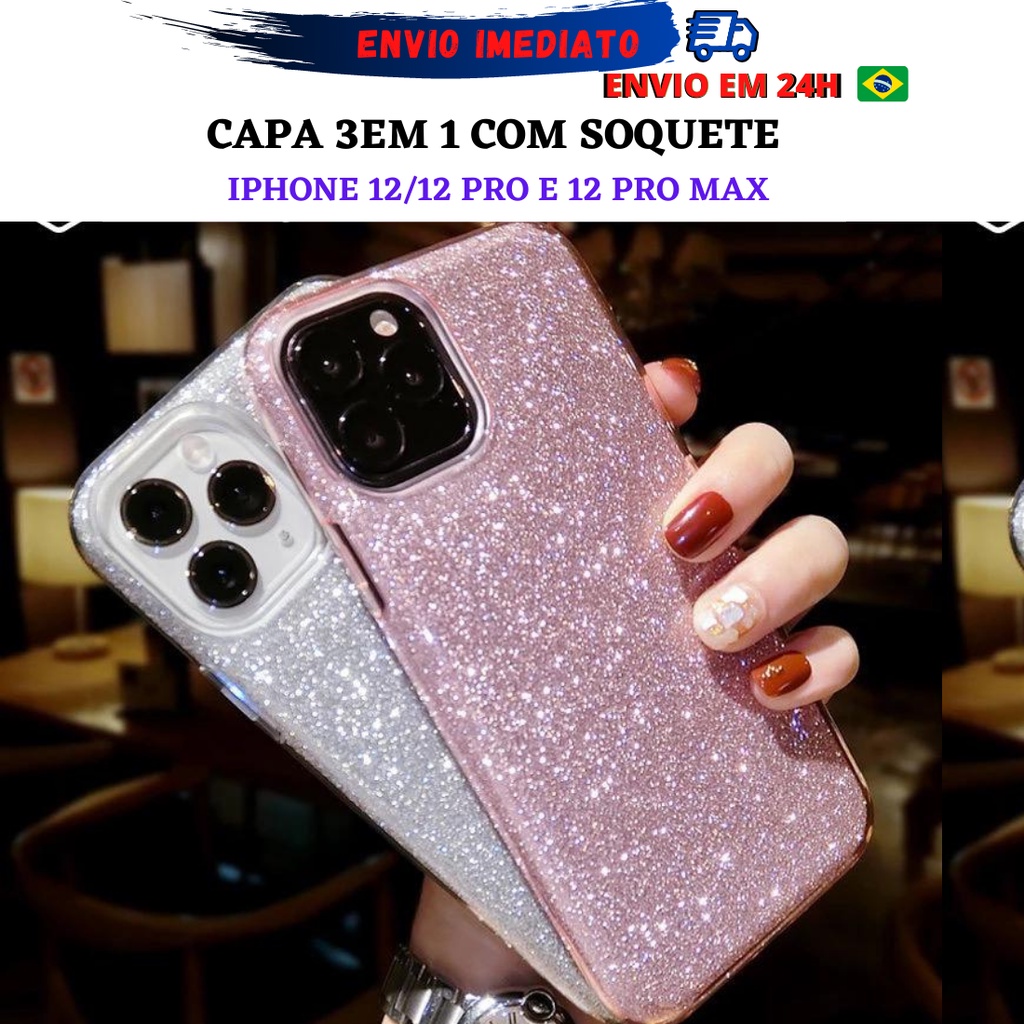 Capa IPhone 12/12 Pro e 12 Pro Max Glitter Silicone Capinha Protetora Várias cores Qualidade Premium