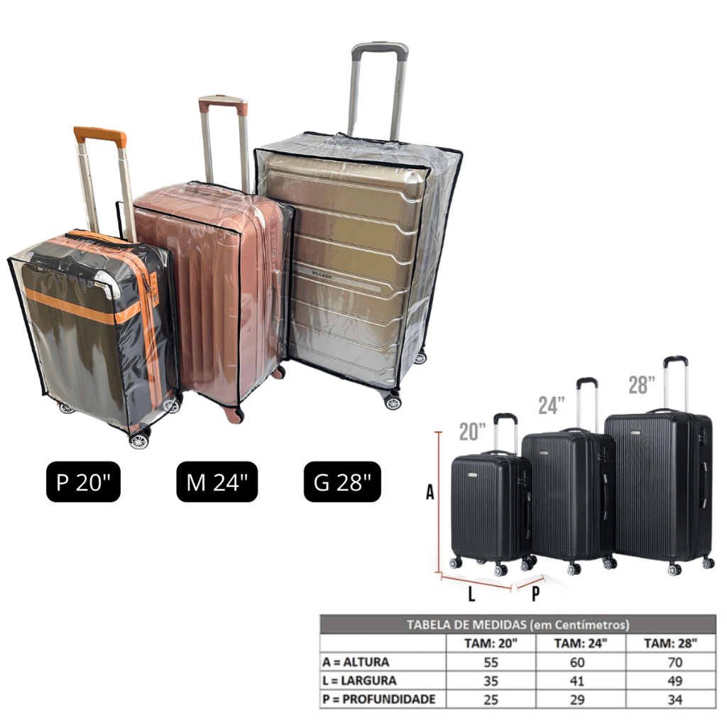 Capa Para Mala de Viagem P/M/G Impermeável Protetora Anti Arranhão Água Risco 10/23/32Kg Resistente