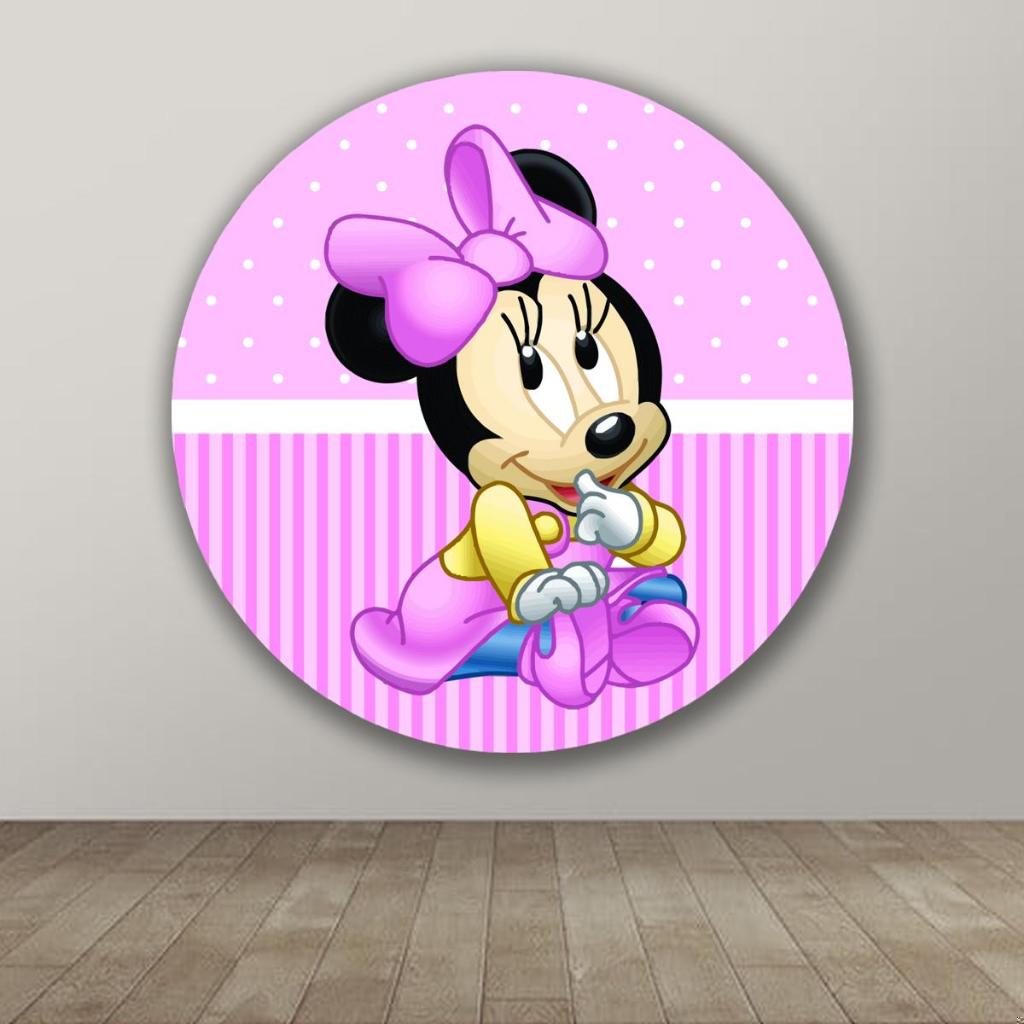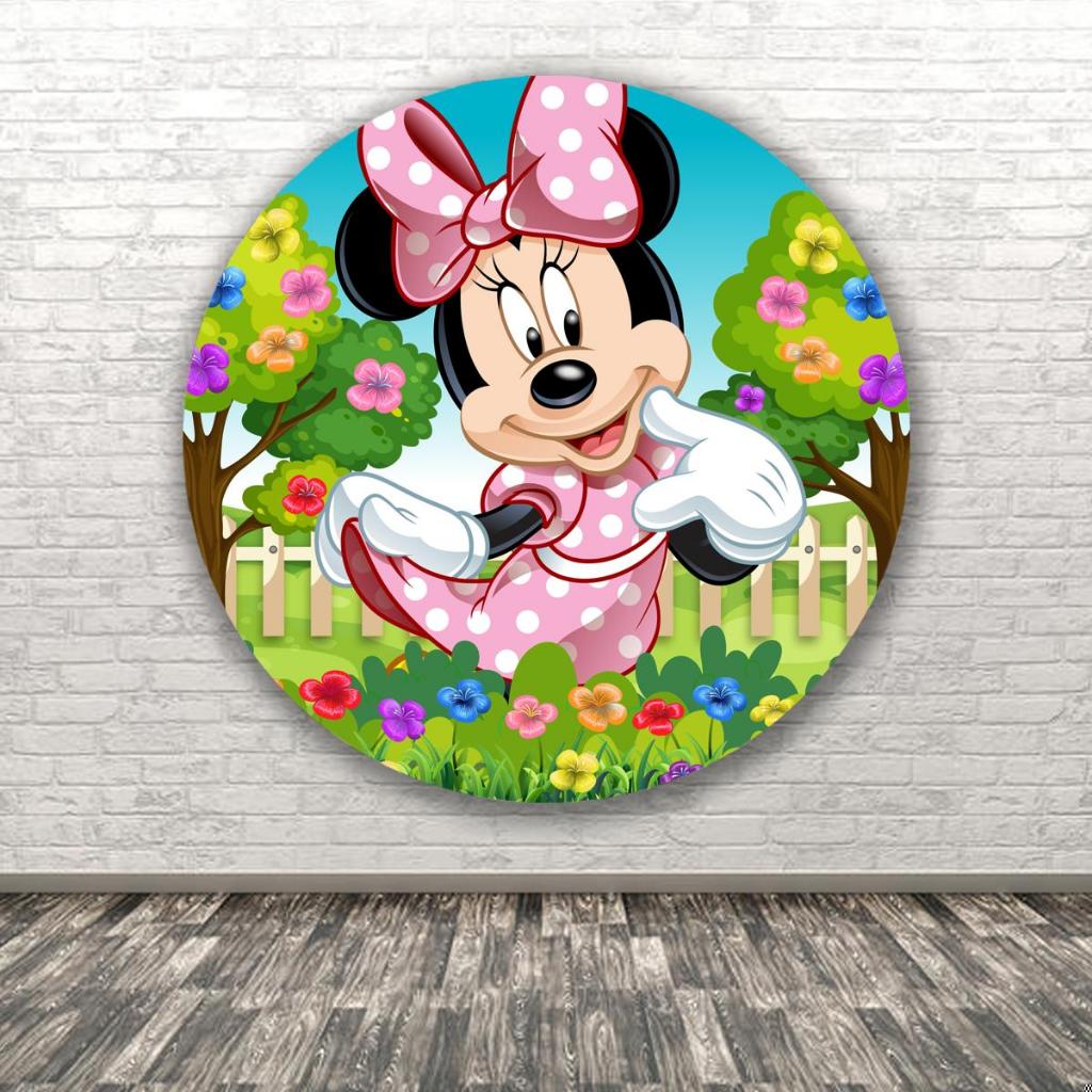 Capa Para Painel Redondo Tema Minnie Rosa Disney Mickey Decoração Elegante Festa Malha sublimada