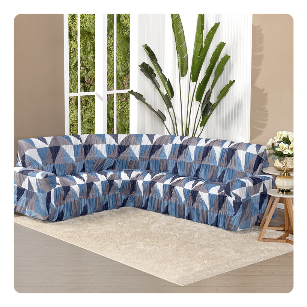 Capa Protetora De Sofá Canto 6 Lugares Em L Estampada Malha Gel