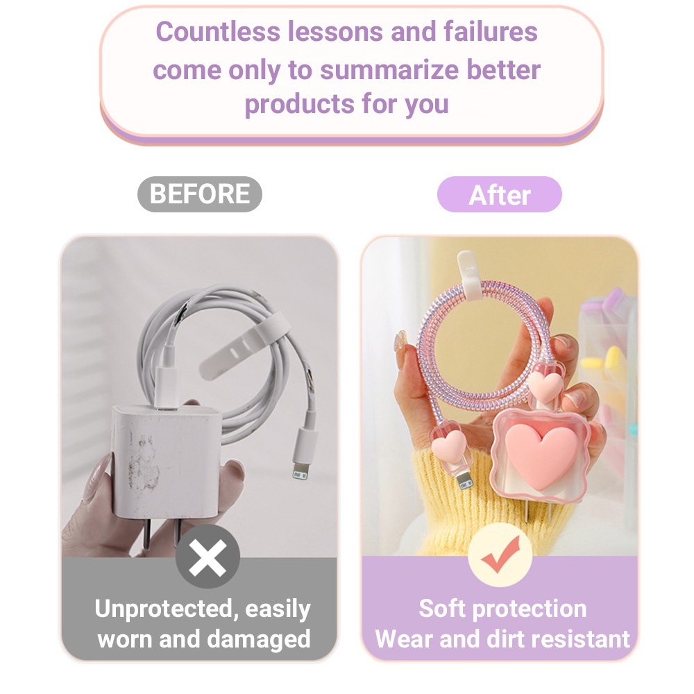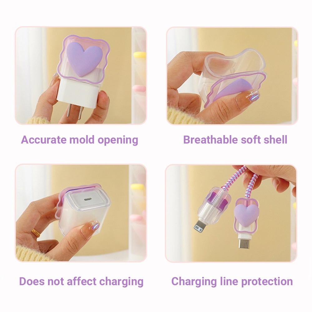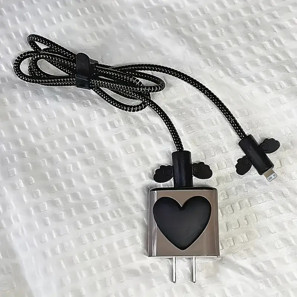Capa Protetora Macia com Padrão de Coração 5 em 1 para Carregador e Cabo para iPhone 18/20W