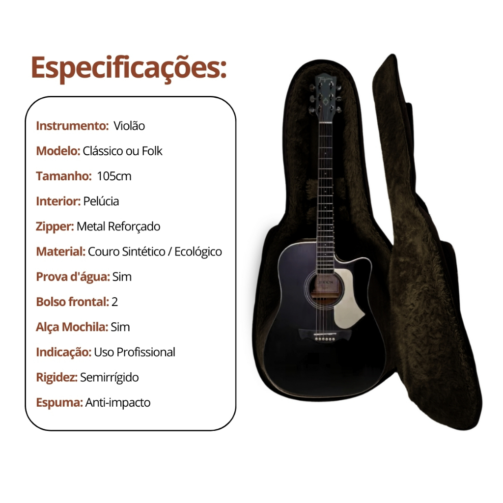 Capa Semicase Violão Clássico Folk Sierra Sag200 Couro Ecológico Hard Case