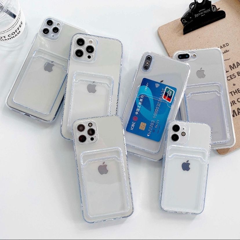 Capa Transparente Porta Cartão IPhone 15/16/16 Pro/16 Pro Max/11/XR/13/14 Capinha Case Bordas Reforçadas Anti Impacto