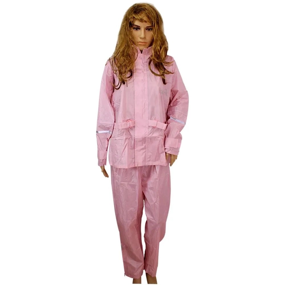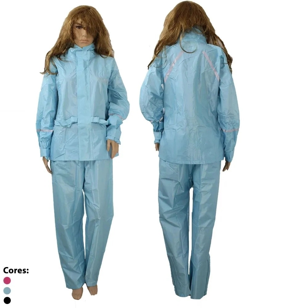 Capa de Chuva Para Motoqueiro Adulta Feminina Poliéster Rosa com Faixa de sinalizao ME126