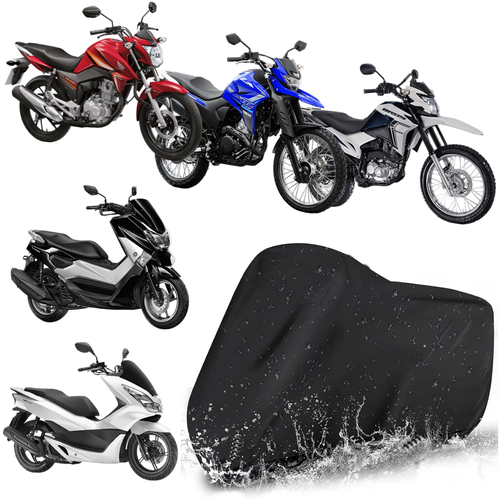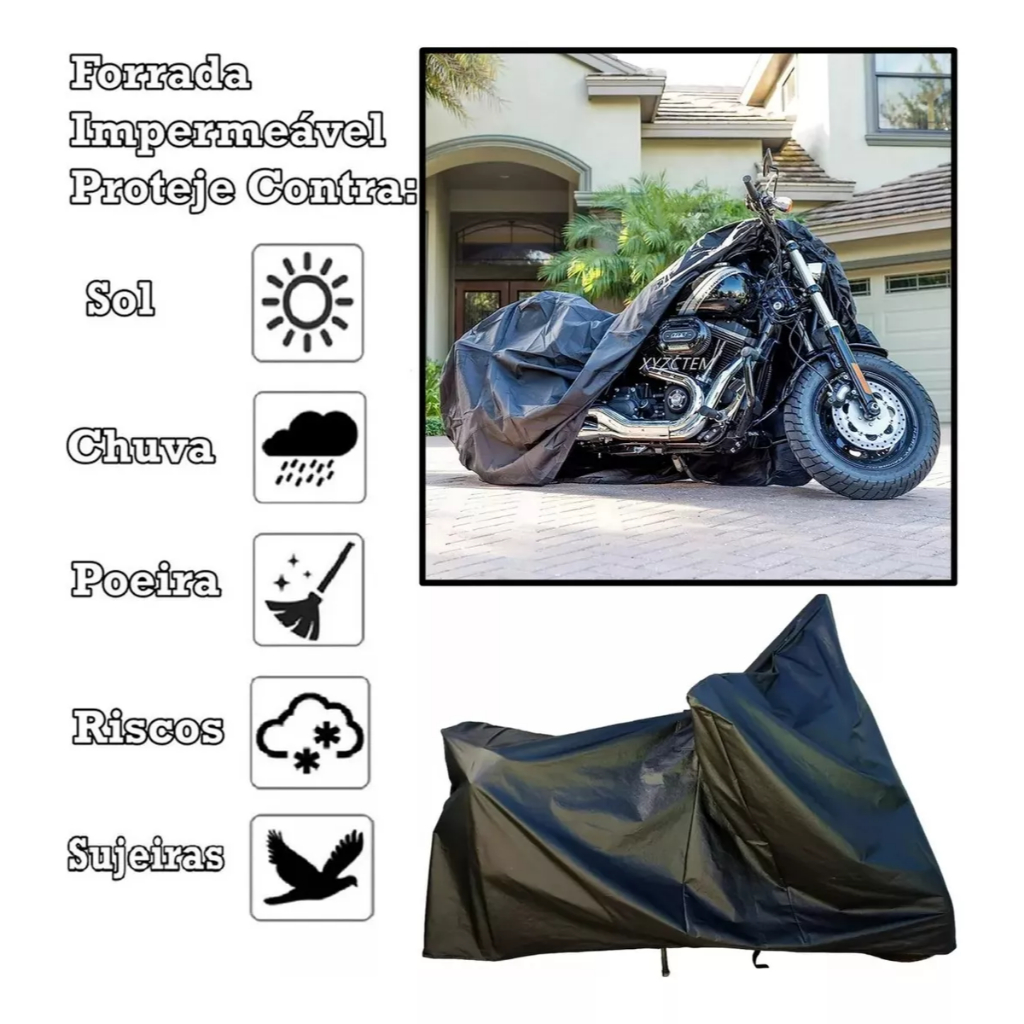 Capa de Cobrir Moto Forrada em Couro Impermeável Protetora Sol Chuva Poeira