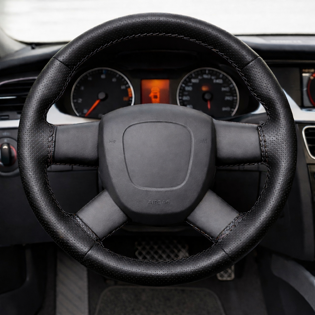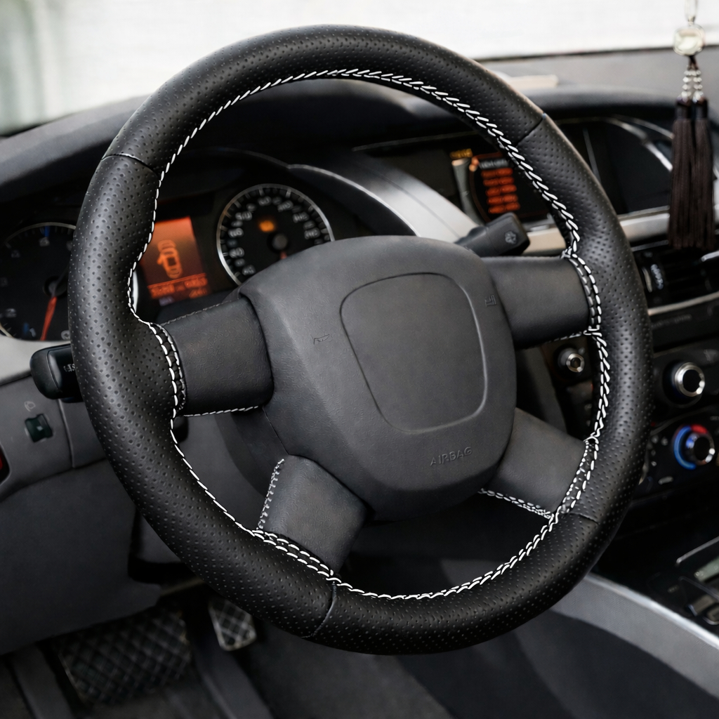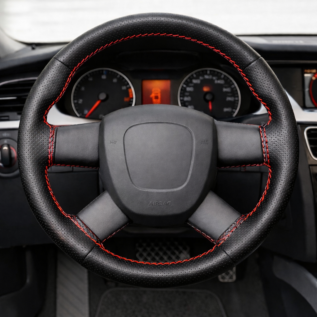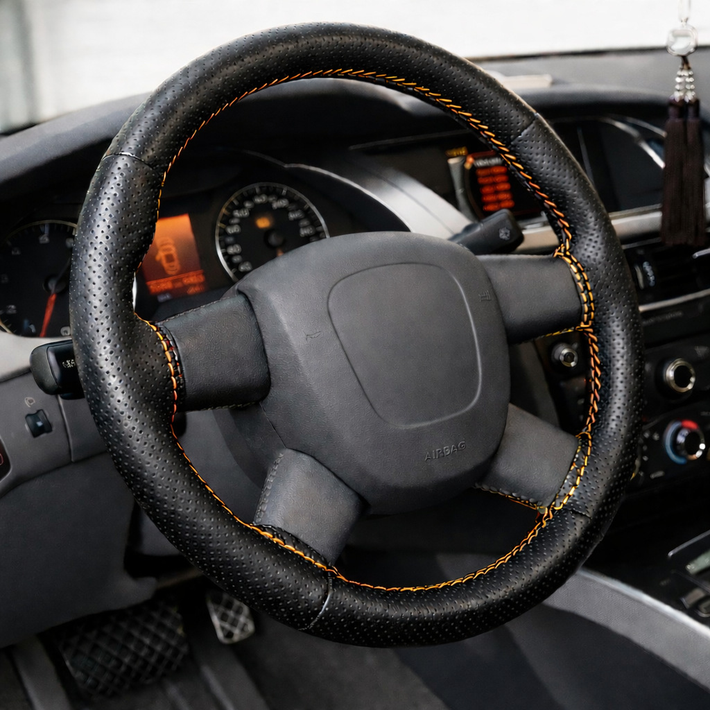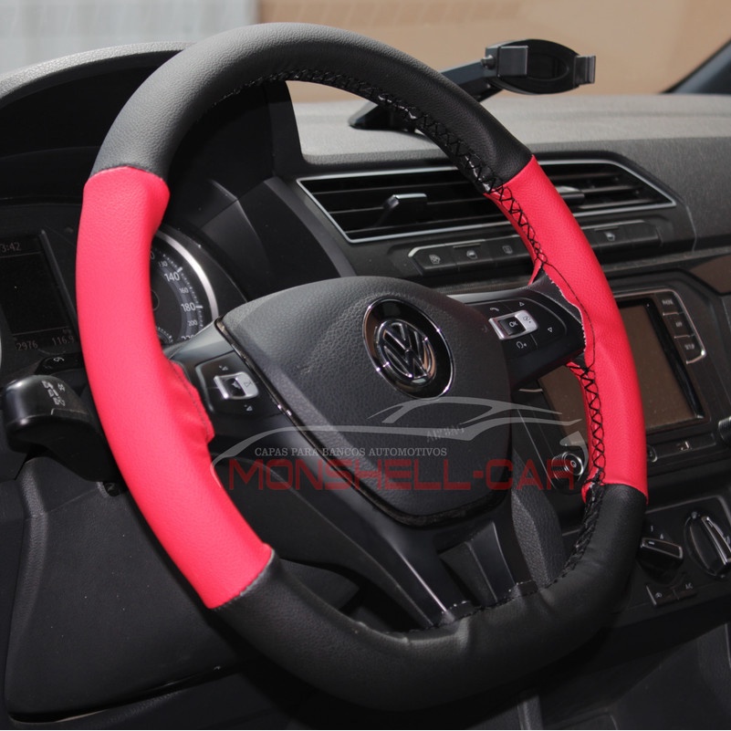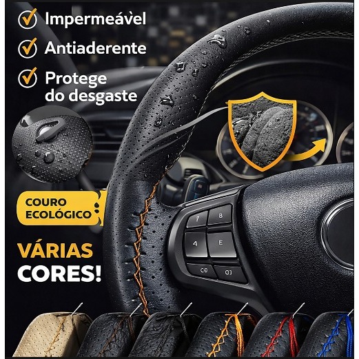 Capa de Volante Carro Costurada em Couro Ecológico Furadinho e Liso
