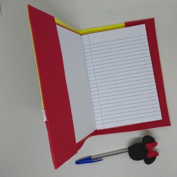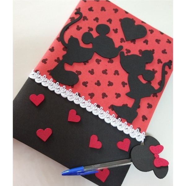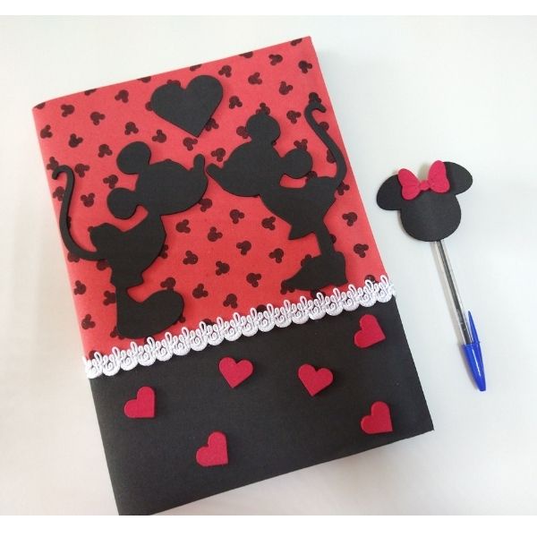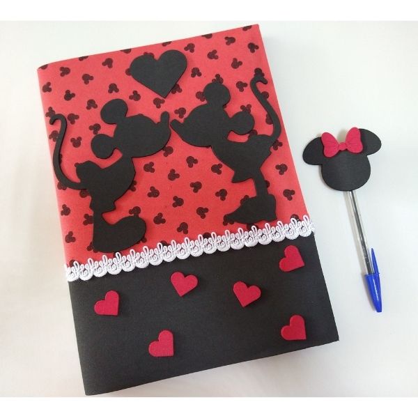 Capa de caderno grande em e.v.a - Tema Mickey e Minnie com caneta