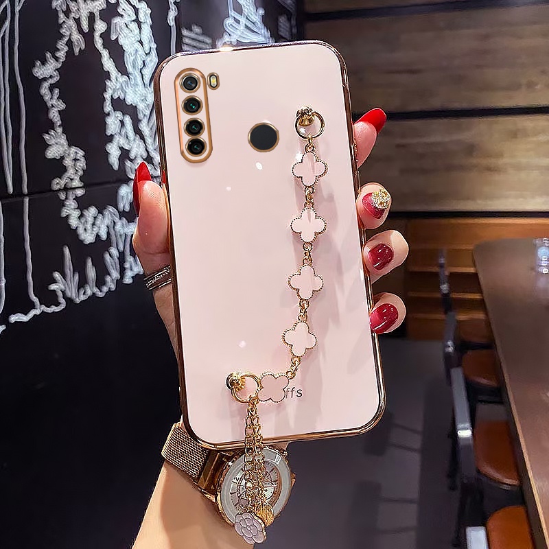 Capa de celular Xiaomi Redmi Note 9 8 7 Pro 9S Note 9 Pro Max Girly Pulseira Trevo de Quatro Folhas Silicone Lucky Soft Case